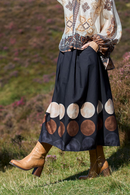 Ein schwarzer Rock bildet die perfekte Grundlage für vielseitige Outfits. Die Kollektion umfasst sowohl schlichte als auch gemusterte Designs, die sich leicht kombinieren lassen. Von Regular-Fit bis zu weiten Maxi-Röcken findet sich für jeden Geschmack das passende Modell.