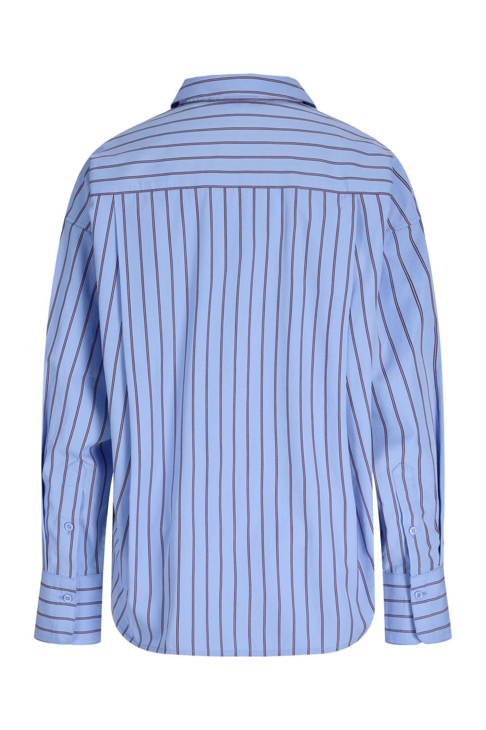 Gestreifte Hemden wirken mit schlichten Accessoires besonders harmonisch. Große Punkte lassen sich gut mit feinen Streifen kombinieren. Eine gestreifte Hemdbluse passt gut zu einer einfarbigen Hose.