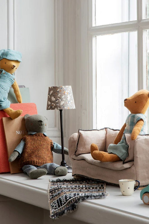 Die Maileg-Kollektion besticht durch ihre harmonische Farbpalette aus sanften Pudertönen, zartem Blau und warmem Sand. Die Möbel und Accessoires spiegeln klassisches skandinavisches Design wider – schlicht, funktional und dennoch verspielt. Besonders die Vintage-Lampen und miniaturisierten Einrichtungsgegenstände zeigen die Liebe zum Detail. Die hochwertigen Materialien und die sorgfältige Verarbeitung machen jedes Stück zu einem besonderen Schatz, der lange Freude bereitet.