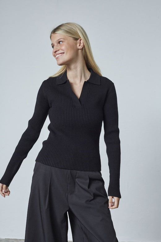 Die Strickkollektion interpretiert klassische Designs neu. Besonders die Mock-Neck-Varianten und Polokragen-Modelle setzen feminine Akzente. Die klaren Linien und durchdachten Farbkombinationen spiegeln die skandinavische Designtradition wider.