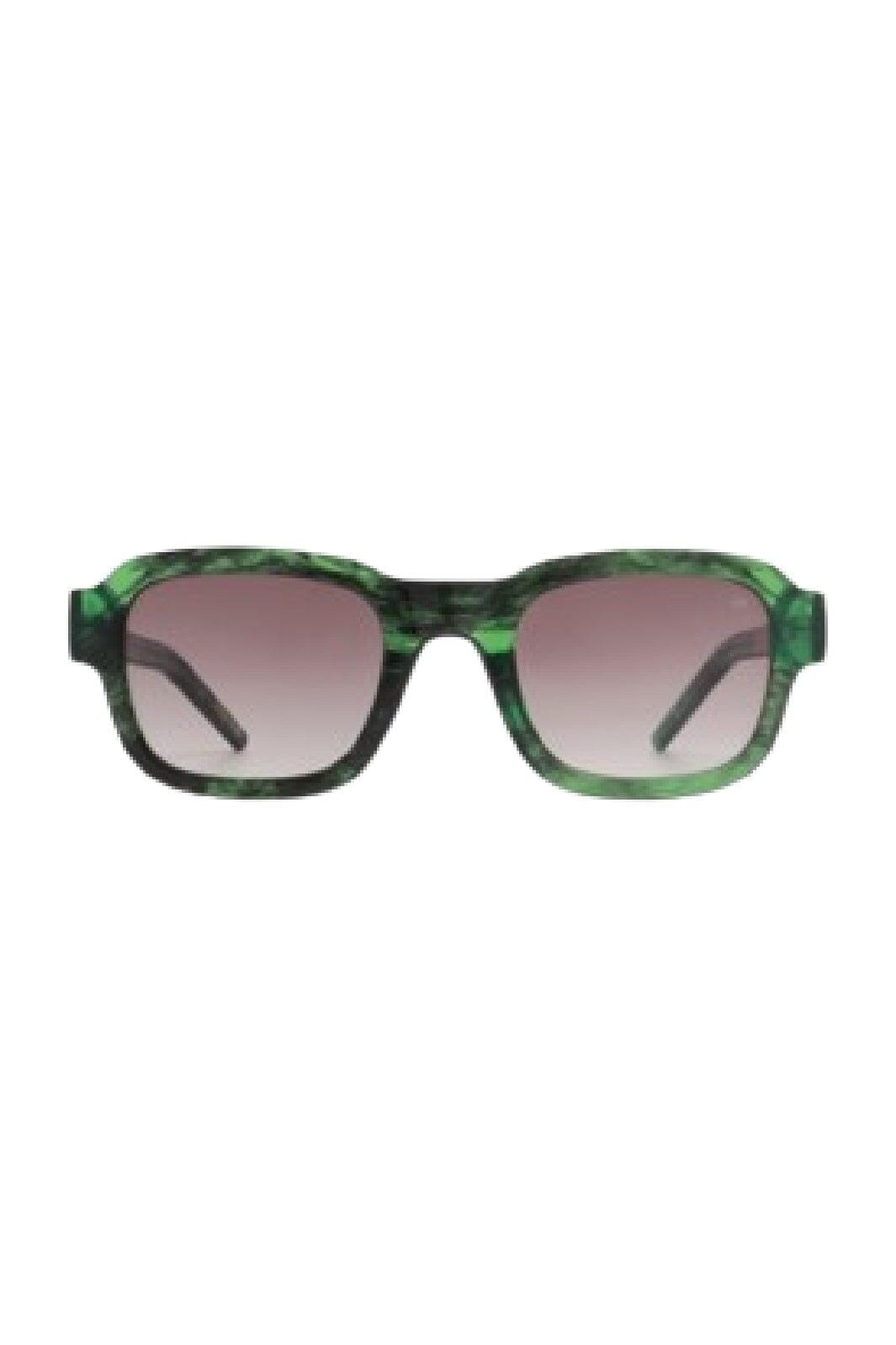 Sonnenbrillen von A. Kjærbede mit grün marmoriertem, transparentem Gestell. Die Brillen haben UV400-Schutz und sind mit optischen Qualitäts-Scharnieren sowie formbaren Bügeln mit Metallkernen ausgestattet.