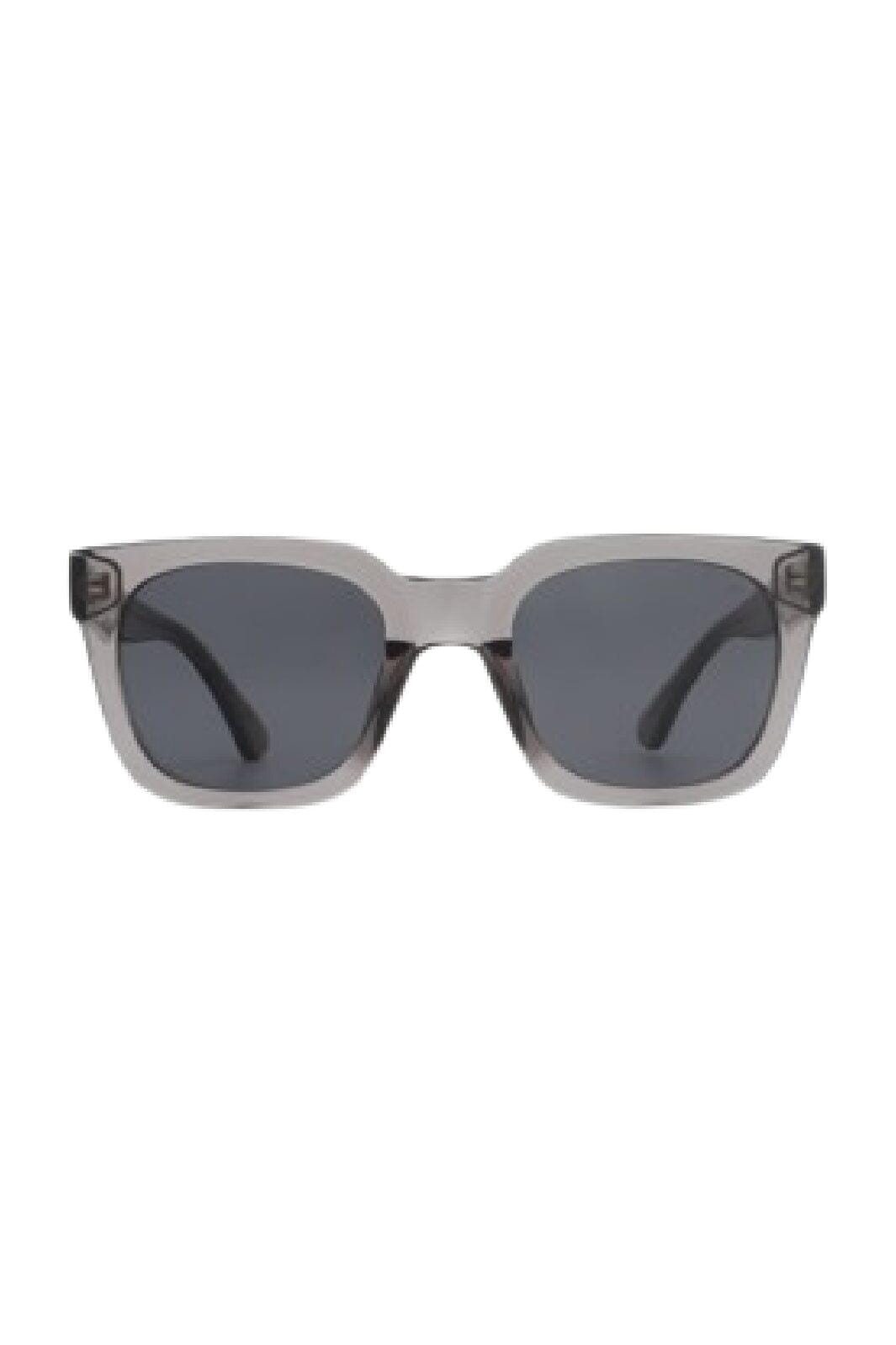 Graue transparente Sonnenbrillen von A. Kjærbede mit rechteckiger Form. Die Sonnenbrillen bieten UV 400-Schutz und sind aus leichtem Polycarbonat mit formbaren Bügeln gefertigt.