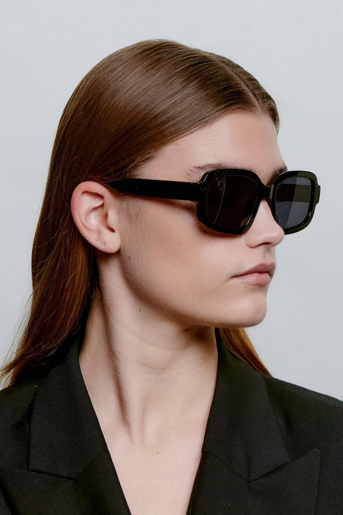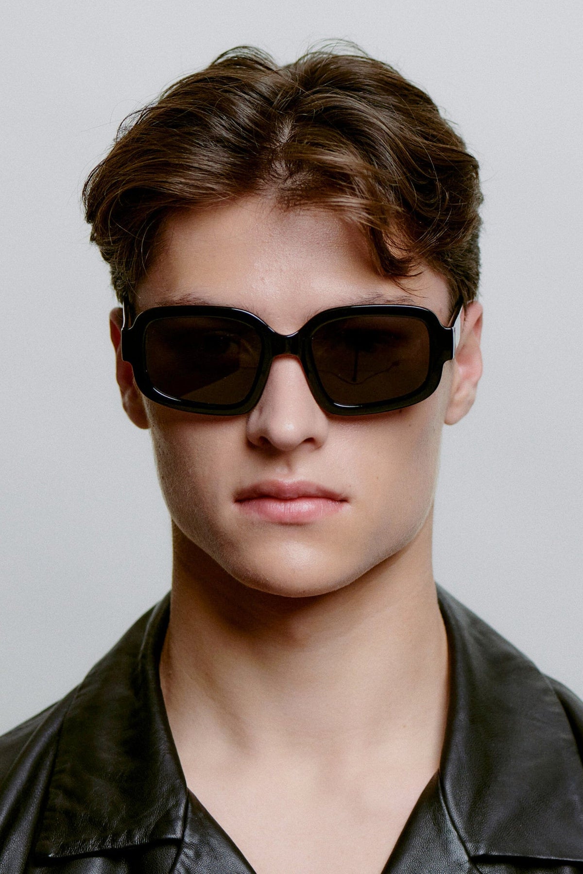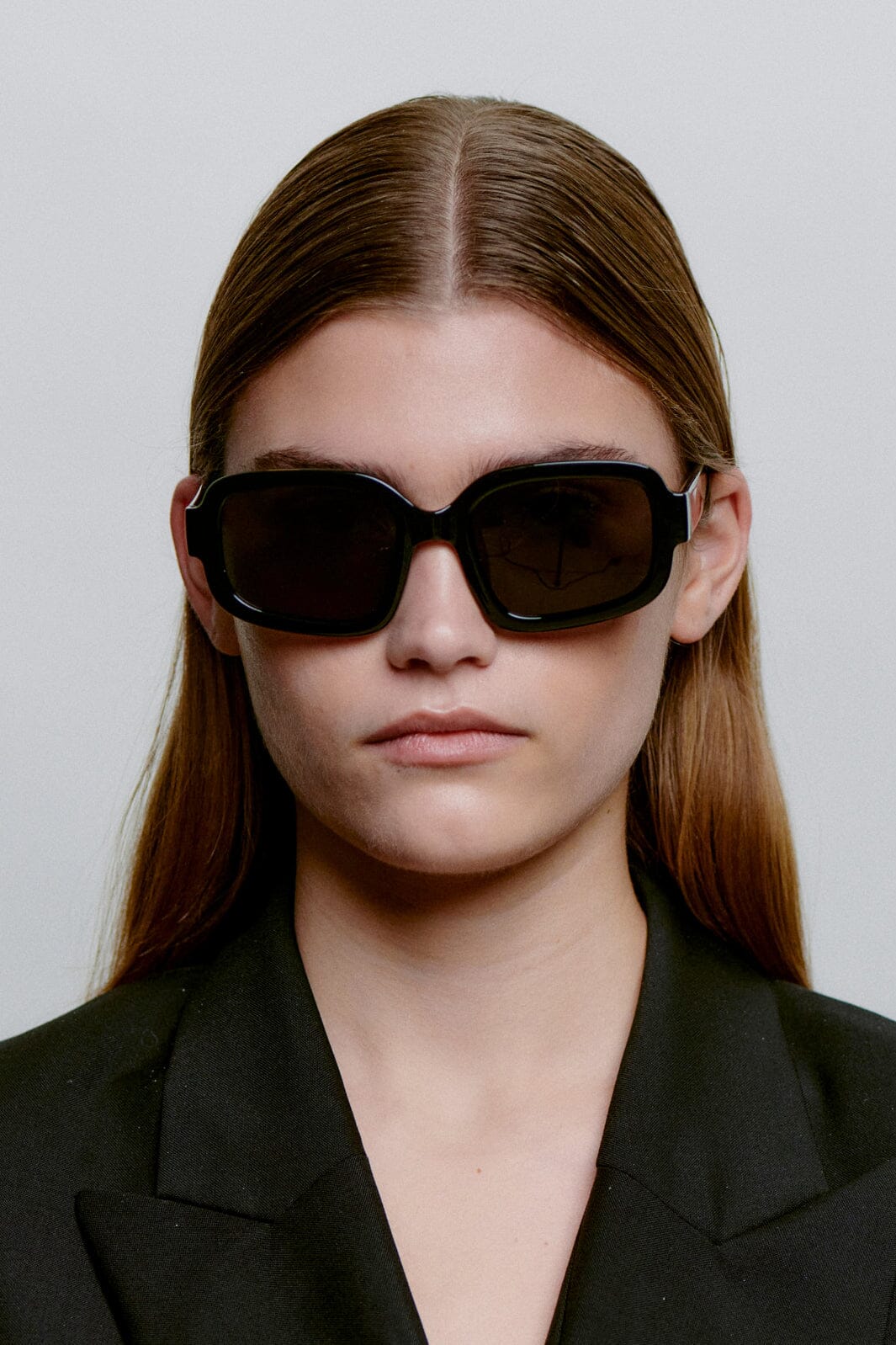 - Schwarzes Gestell und dunkle Gläser