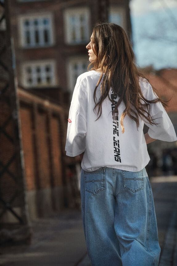 Hellblaue Jeans von Ball mit geschwungener Beinform. Die Jeans haben eine hohe Taille und eine lockere Passform.