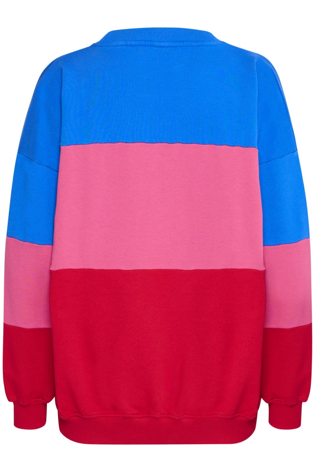 Sweatshirt von Ball mit Farbblockdesign in Blau, Pink und Rot. Es hat ein gesticktes BALL-Logo auf der Vorderseite und einen Rundhalsausschnitt mit Rippkante.