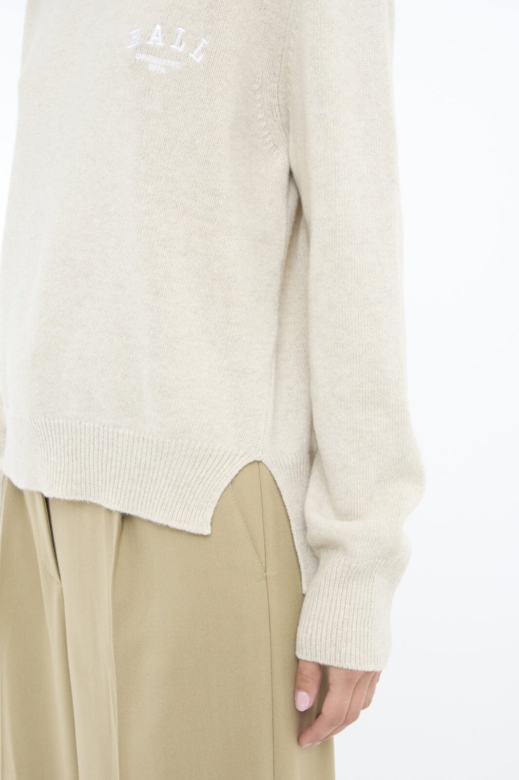 Crewneck-Pullover von Ball in einem hellen Cremefarbton. Sie hat ein dezentes gesticktes Logo auf der Brust und Rippbündchen an den Ärmeln und am Saum.