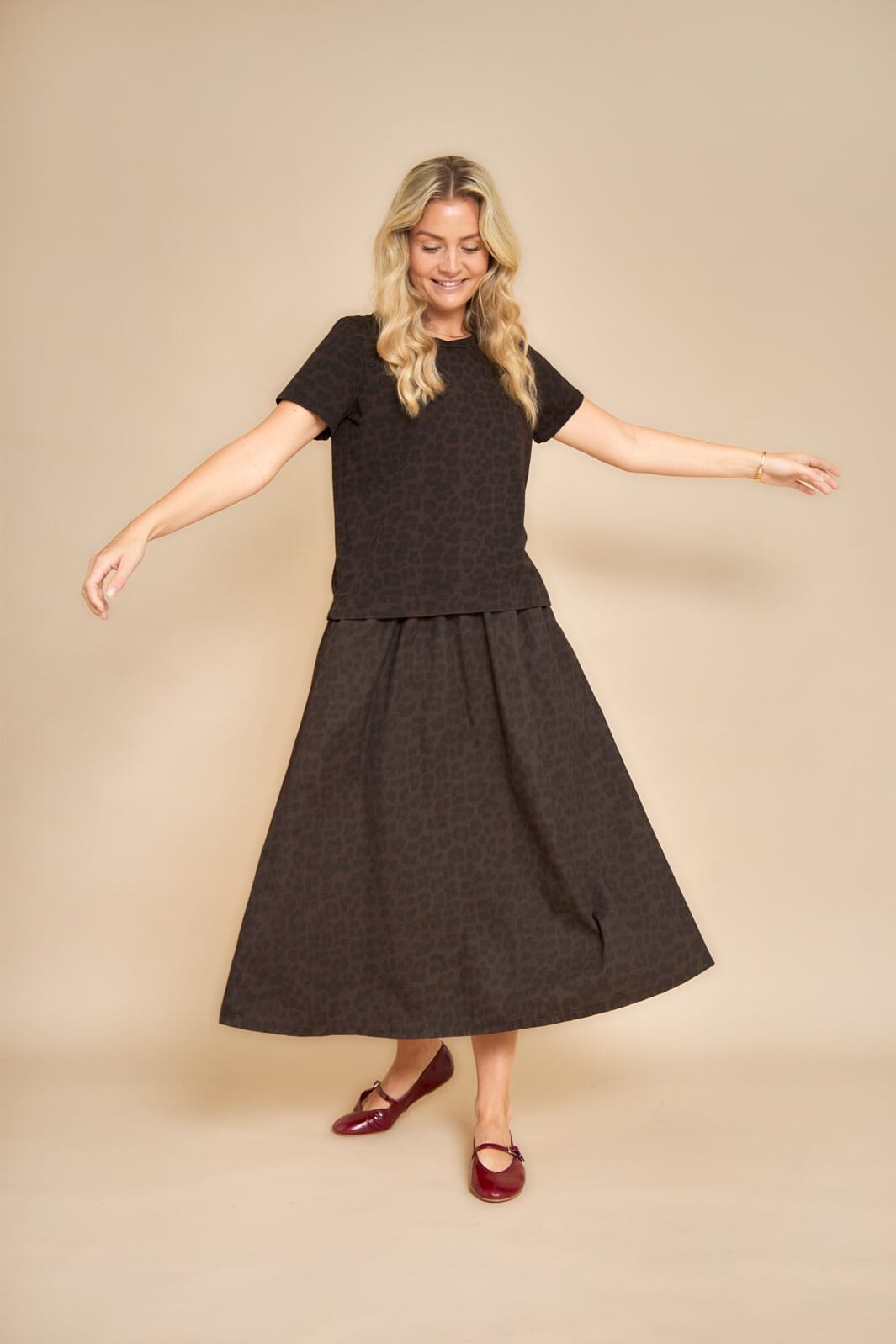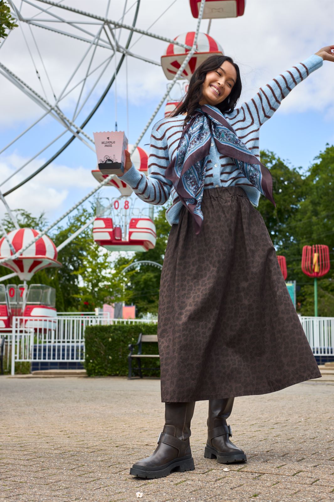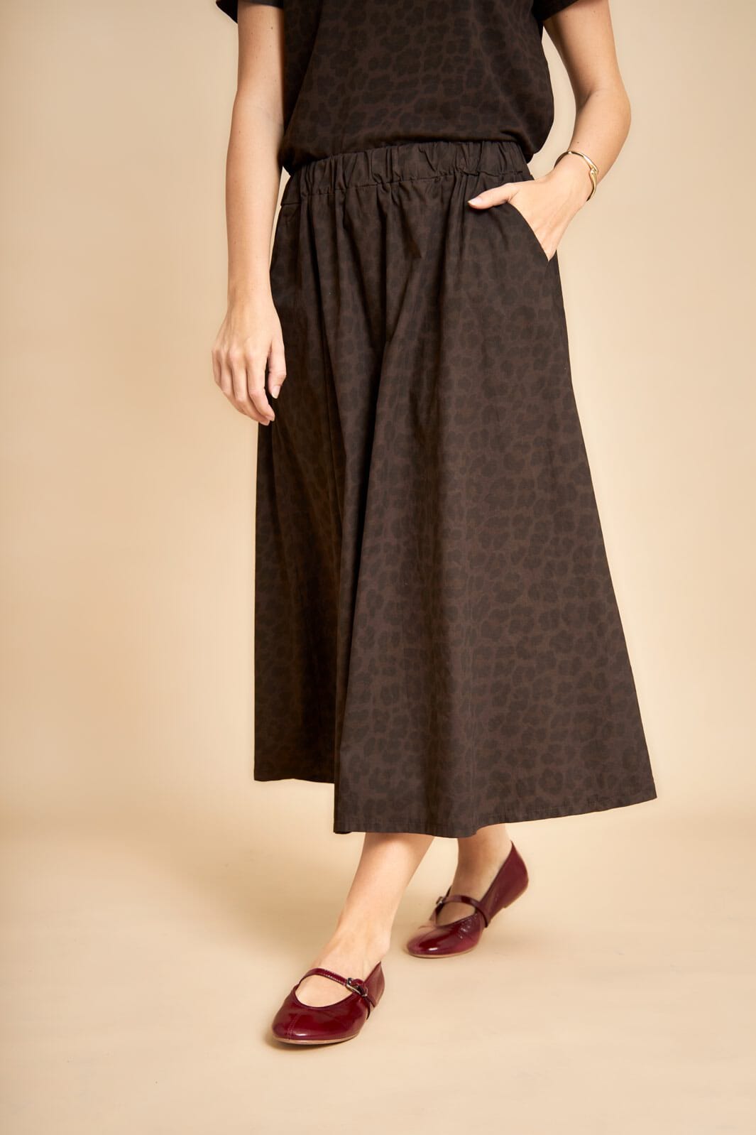 Langes Rock von Black Colour im braunen Leopardenmuster. Der Rock hat eine Länge bis zur Wade und einen elastischen Bund, der eine gute Passform bietet.