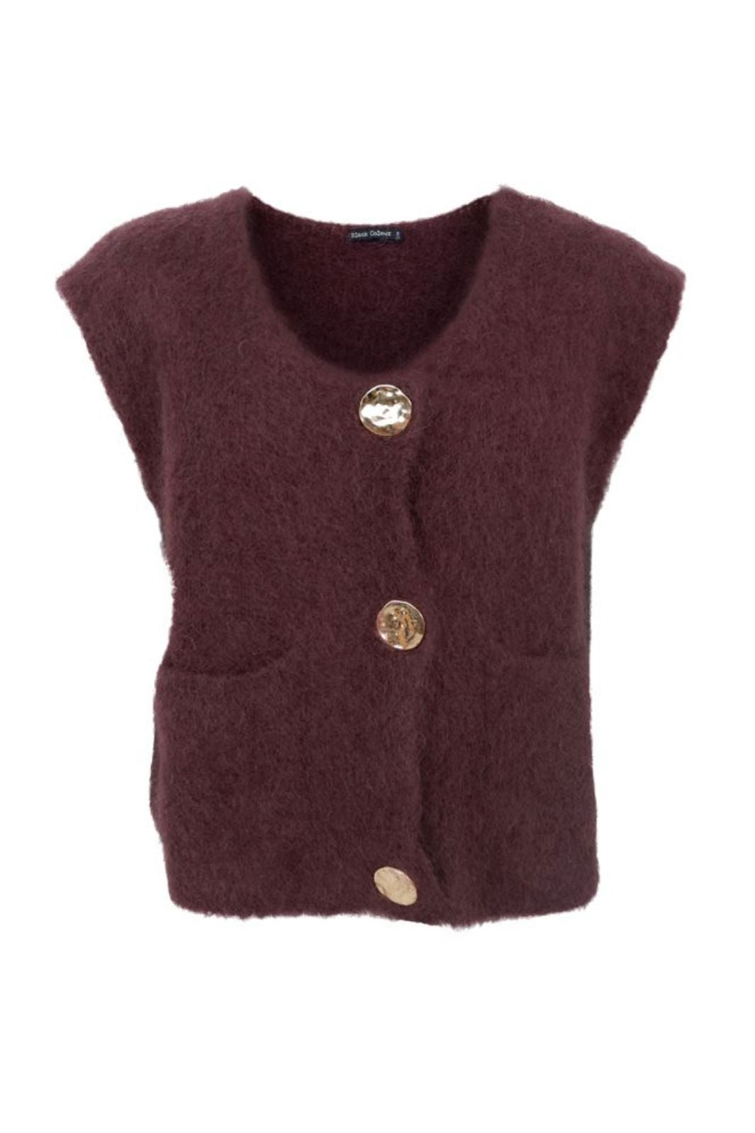 Strickweste von Black Colour in einem warmen Braunton. Die lockere Passform und die großen Knöpfe verleihen der Weste einen praktischen und stilvollen Ausdruck.