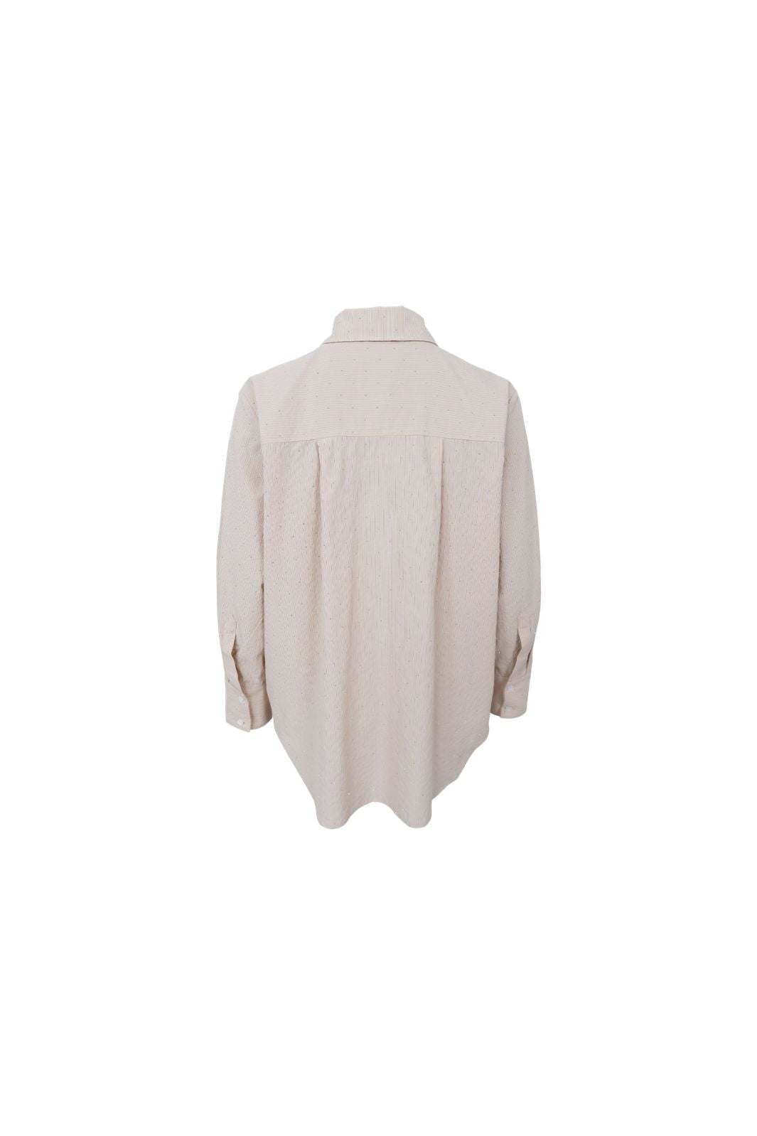 Cremefarbene Hemd von Black Colour mit Streifenmuster und Pailletten. Das Hemd hat eine lockere Passform und lange Ärmel mit klassischem Hemdkragen und Knopfleiste.