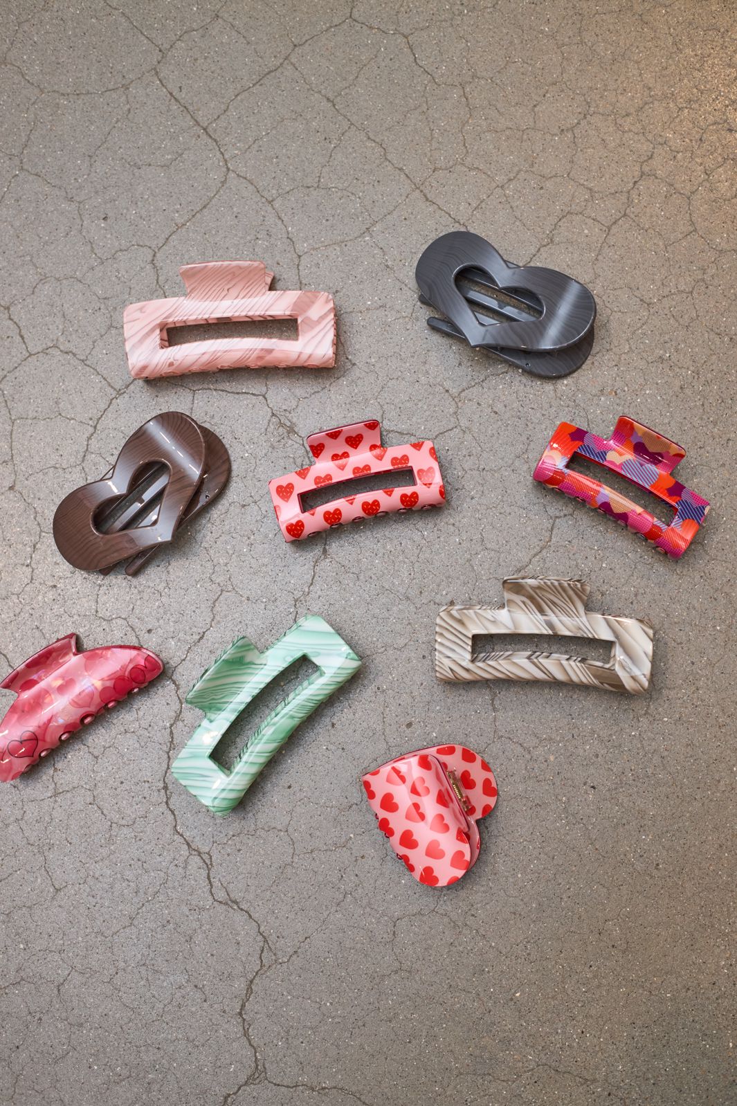 Haarspange von Black Colour in Grau mit einem herzförmigen Design und einer glatten, glänzenden Oberfläche. Die Spange hat eine zentrale Öffnung in der Herzform.