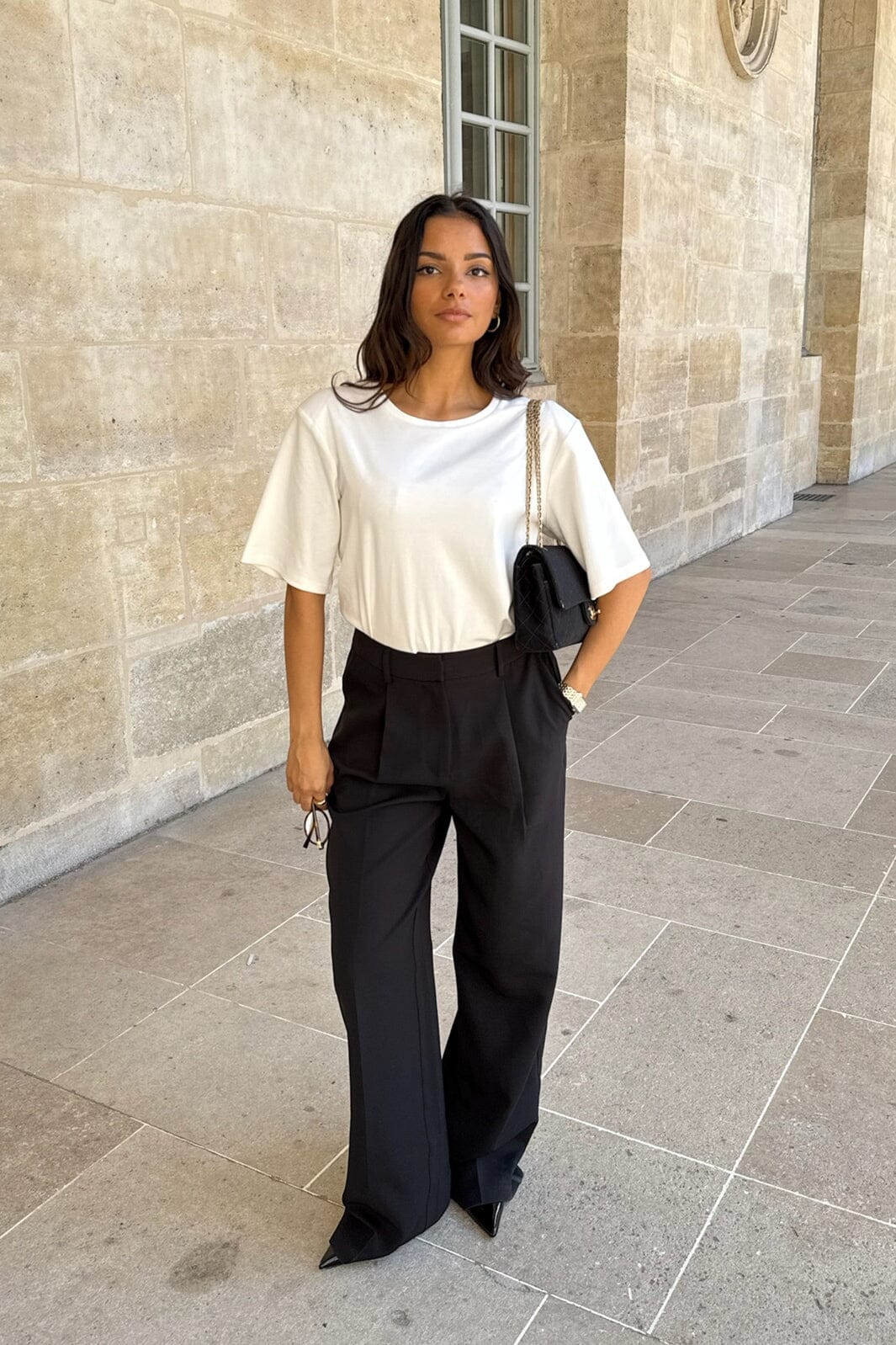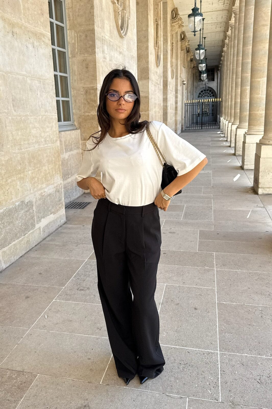 Schwarze Hosen von BYIC mit hoher Taille und weitem Bein. Die Hosen haben eine lockere Passform und reichen bis zum Boden, was sie sowohl für den Alltag als auch für Feste geeignet macht.