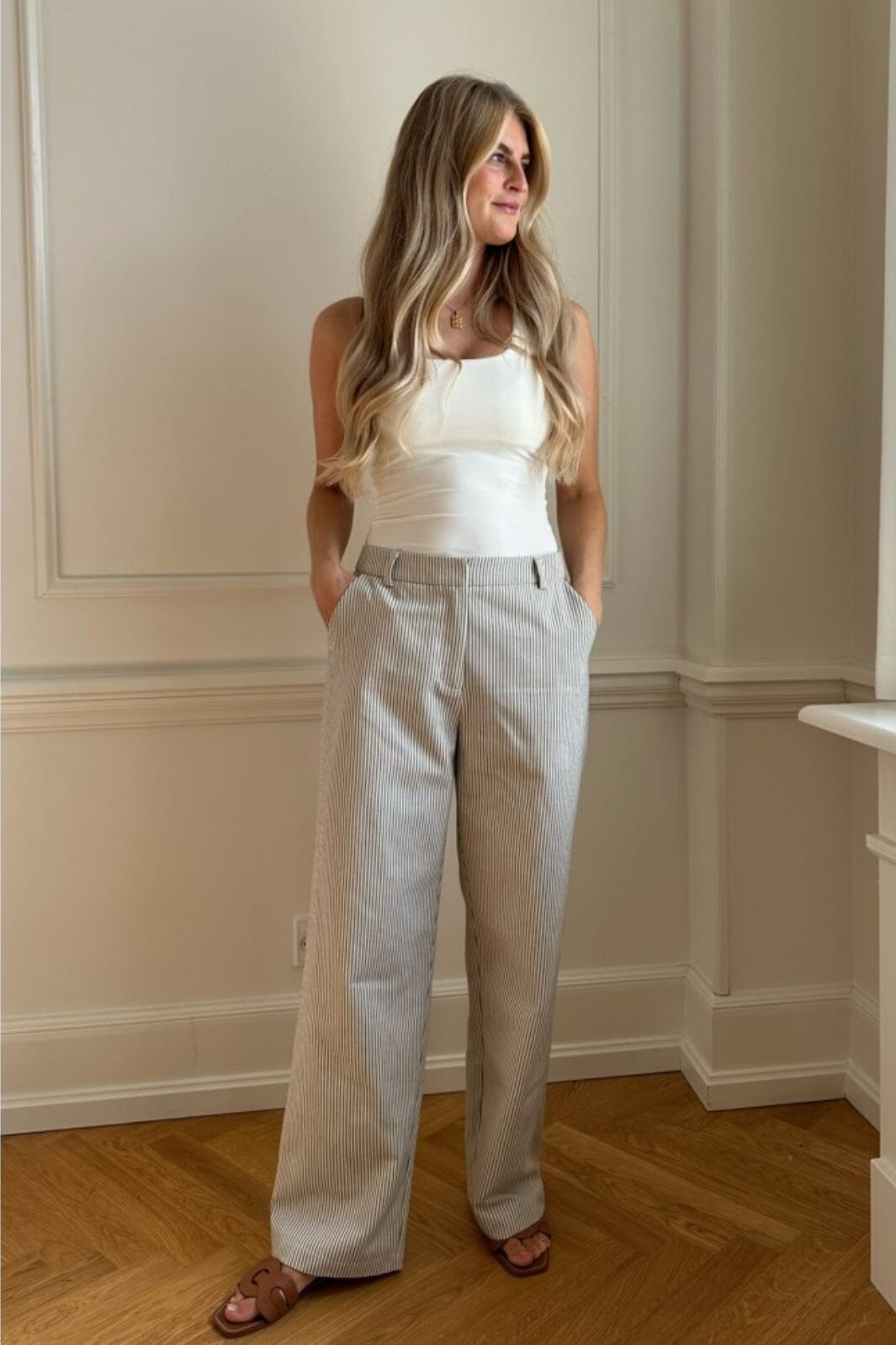 BYIC BYIC - Nanna Pants Dark Beige Woven Stripe