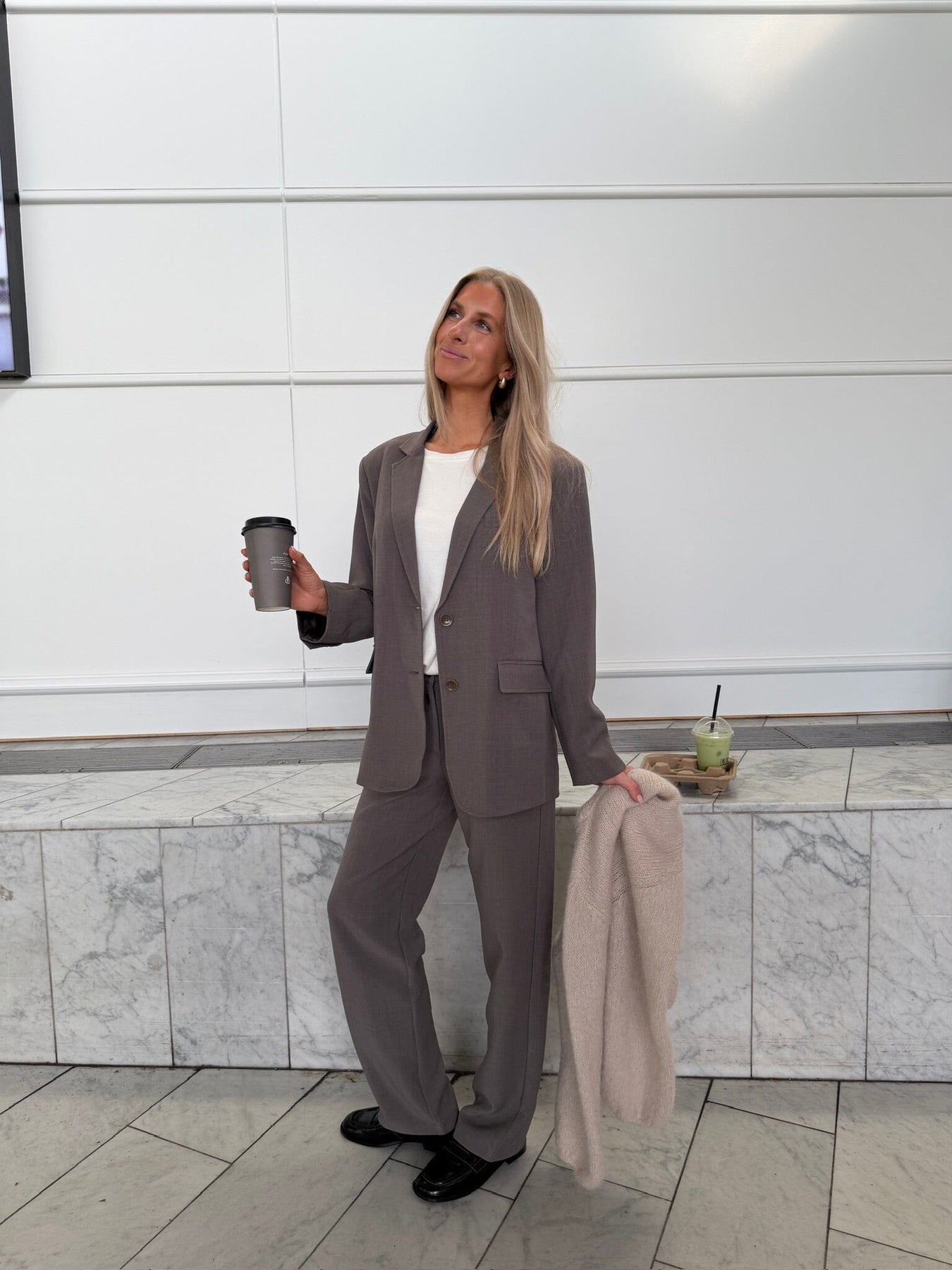 Grauer Blazer von BYIC aus strukturiertem Stoff mit leichtem Fall. Der Blazer hat eine oversized Passform und eignet sich sowohl für formelle Anlässe als auch für den Alltag und festliche Gelegenheiten.