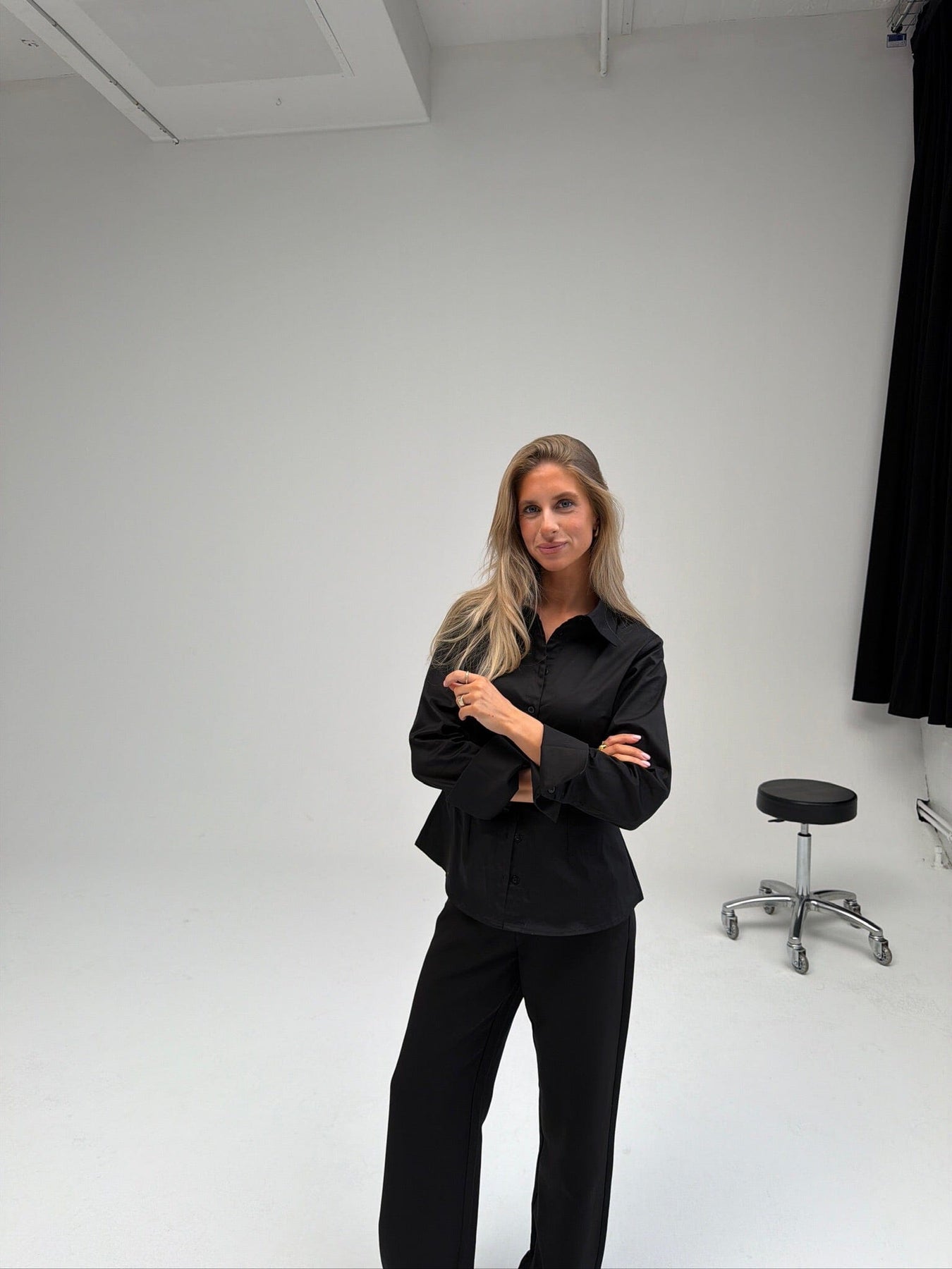 Schwarzes Hemd von BYIC mit klassischem Kragen und Knopfleiste. Das Hemd hat eine figurbetonte Passform mit breiten Manschetten und langen Ärmeln.