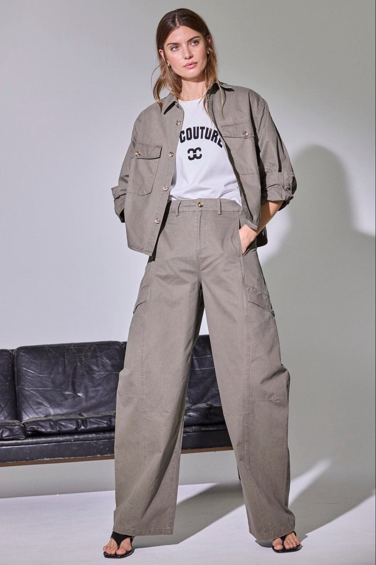 Hose von Co´Couture in Armeegrün. Die Hose besteht aus 100 % Baumwolle mit hoher Taille und weiter Passform.