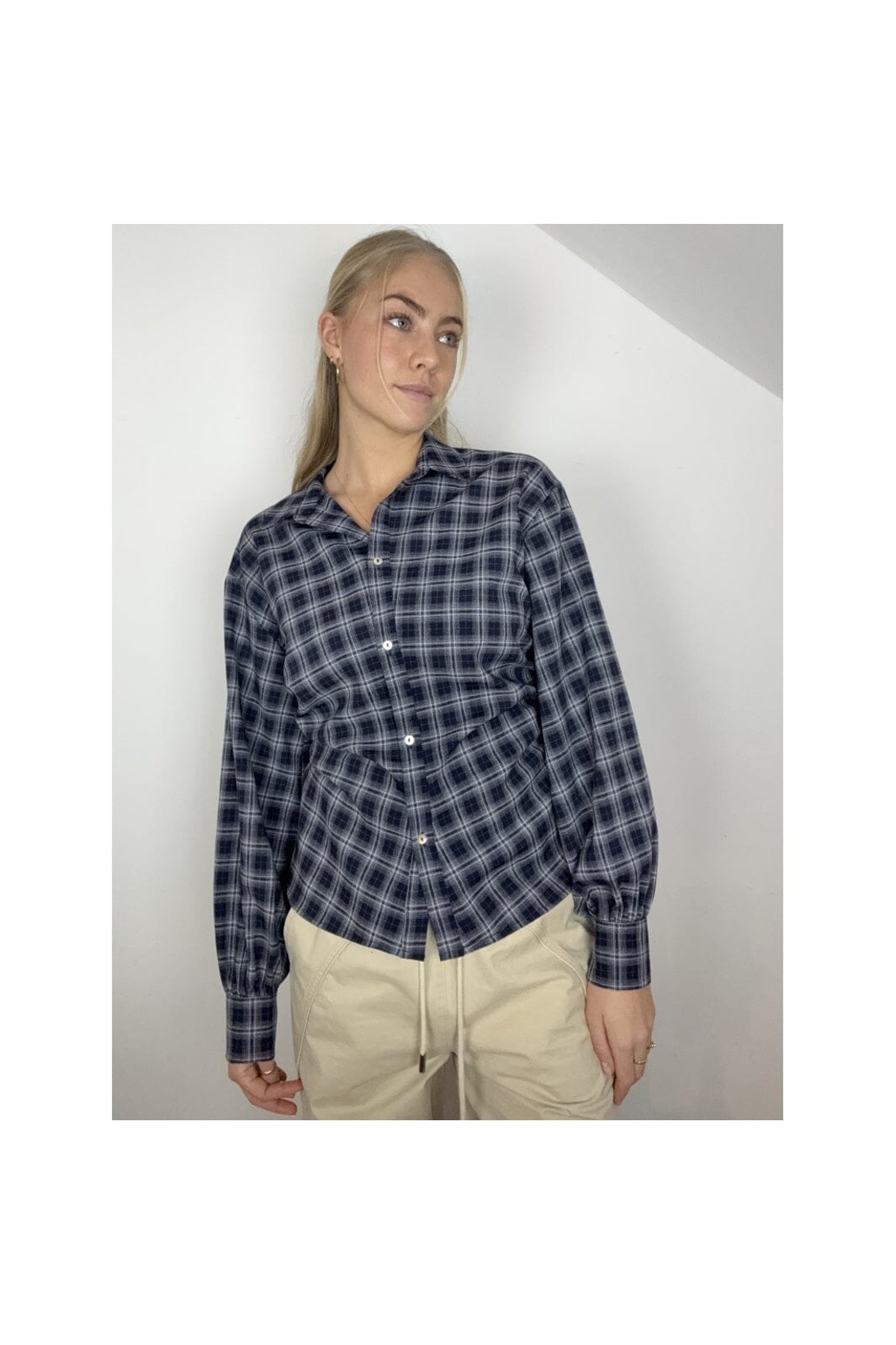 Kariertes Hemd von Continue in dunkelblauen und blauen Nuancen. Das Hemd besteht aus 100 % Baumwolle und hat ein klassisches Karomuster mit Knopfleiste.