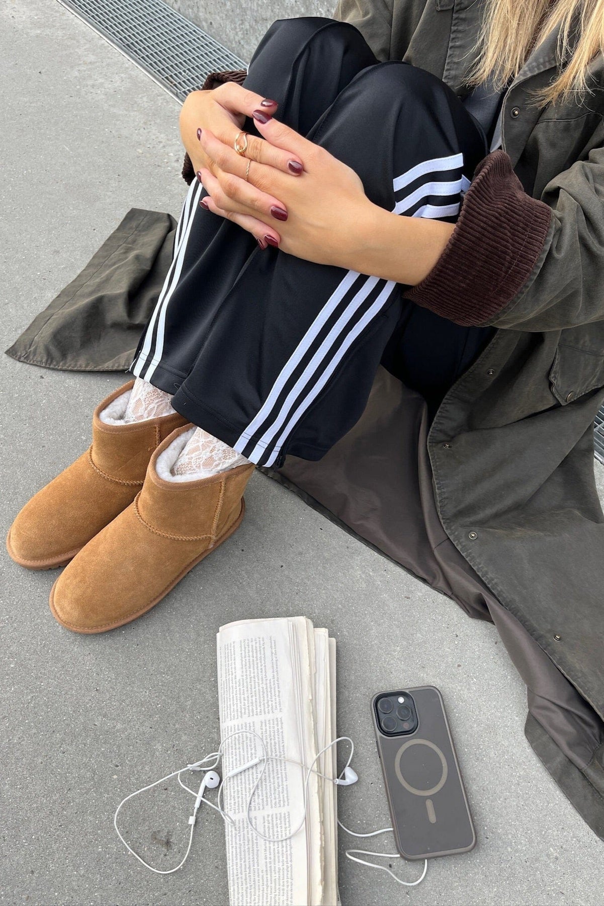 Stiefeletten aus kamelfarbenem Wildleder und Leder von Copenhagen Shoes. Die Stiefel haben eine weiche Oberfläche und ein warmes Teddyfutter, das sie ideal für den Gebrauch zu Hause macht.