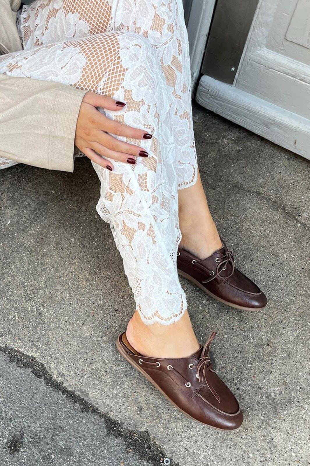Braune Loafer von Copenhagen Shoes, gefertigt aus Leder. Die Schuhe haben ein Slip-on-Design mit dekorativen Schnürsenkeln und Metallösen.