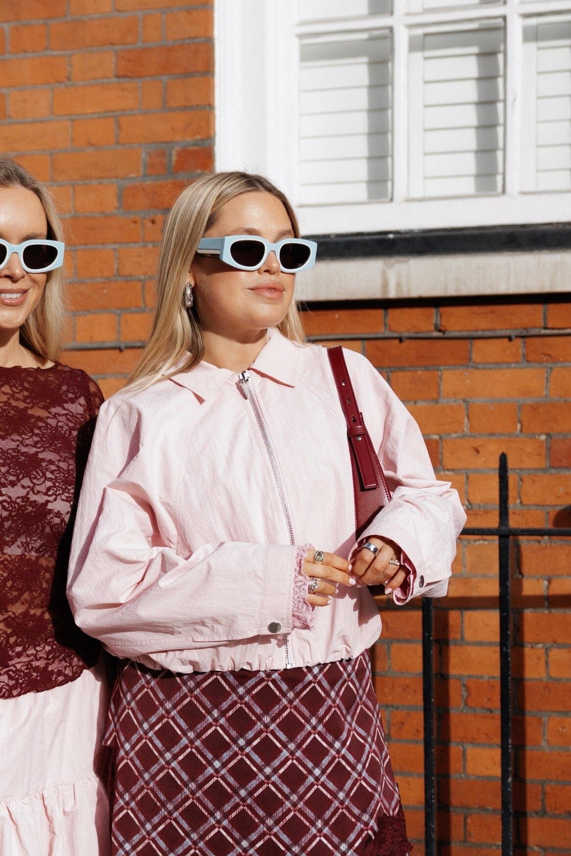 Eine pinkfarbene Bomberjacke von Cras aus 100 % Nylon. Die Jacke hat eine oversized Passform mit langen Ärmeln und einem klassischen Hemdkragen.