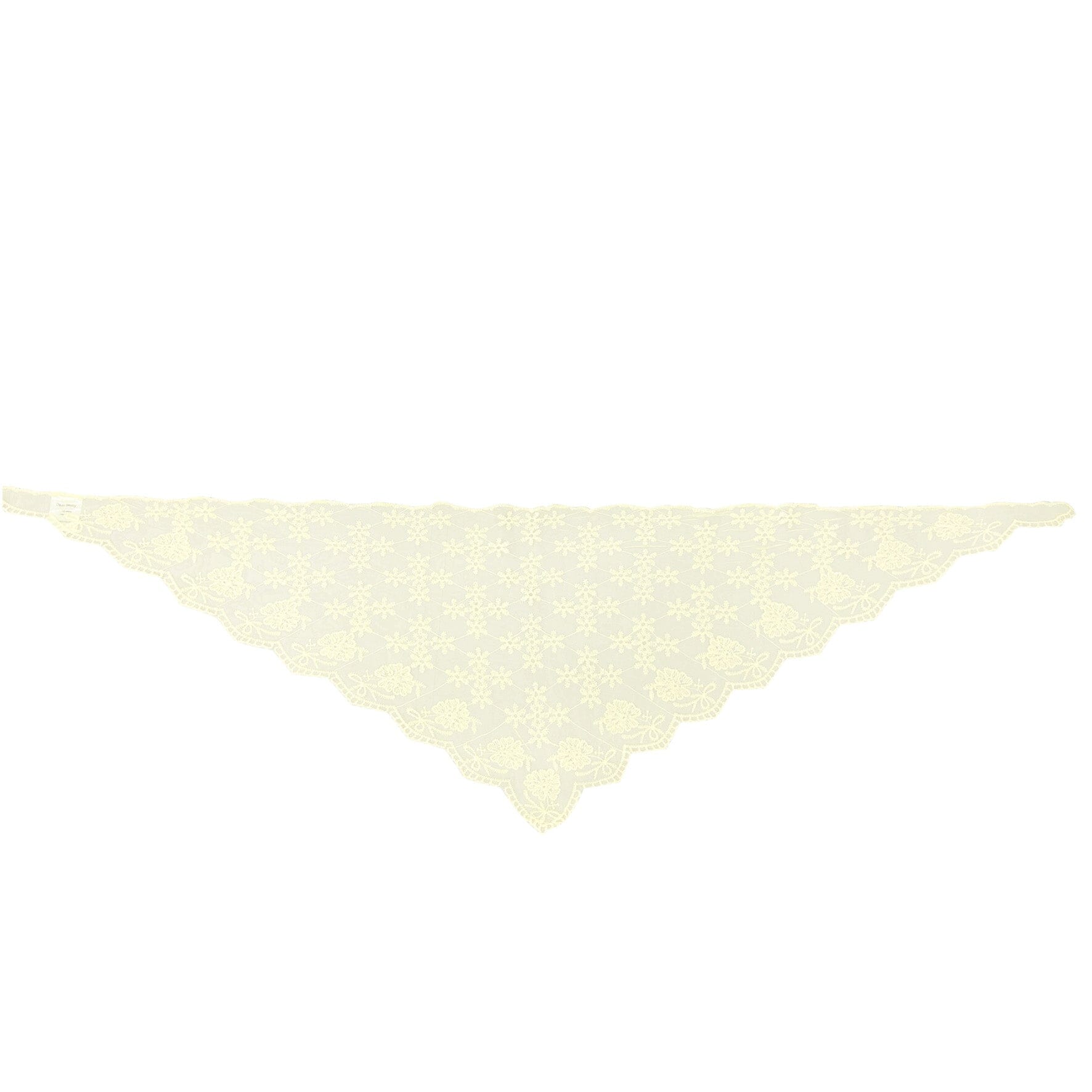 Schal von Dear Molly in buttergelber Farbe. Der Schal besteht aus gewebtem Material mit floraler Spitzenmusterung und einem Scallop-Saum.