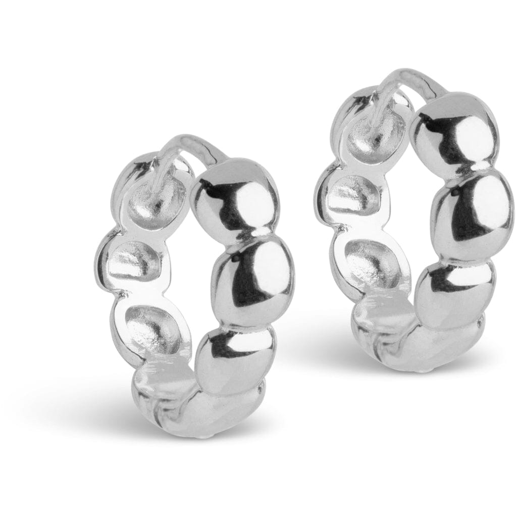Silberfarbene Hoops von Enamel Copenhagen, gefertigt aus recyceltem Sterlingsilber. Die Ohrringe haben glatte, abgerundete Segmente mit einer polierten Oberfläche.