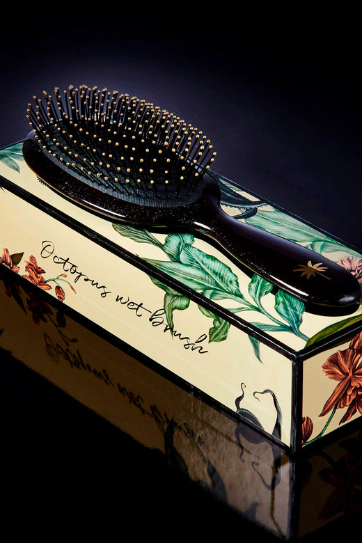 Die kurzen Wildschweinborsten in der Bürste verteilen die natürlichen Öle des Haares von der Wurzel bis zur Spitze und bieten eine sanfte Kopfhautmassage.