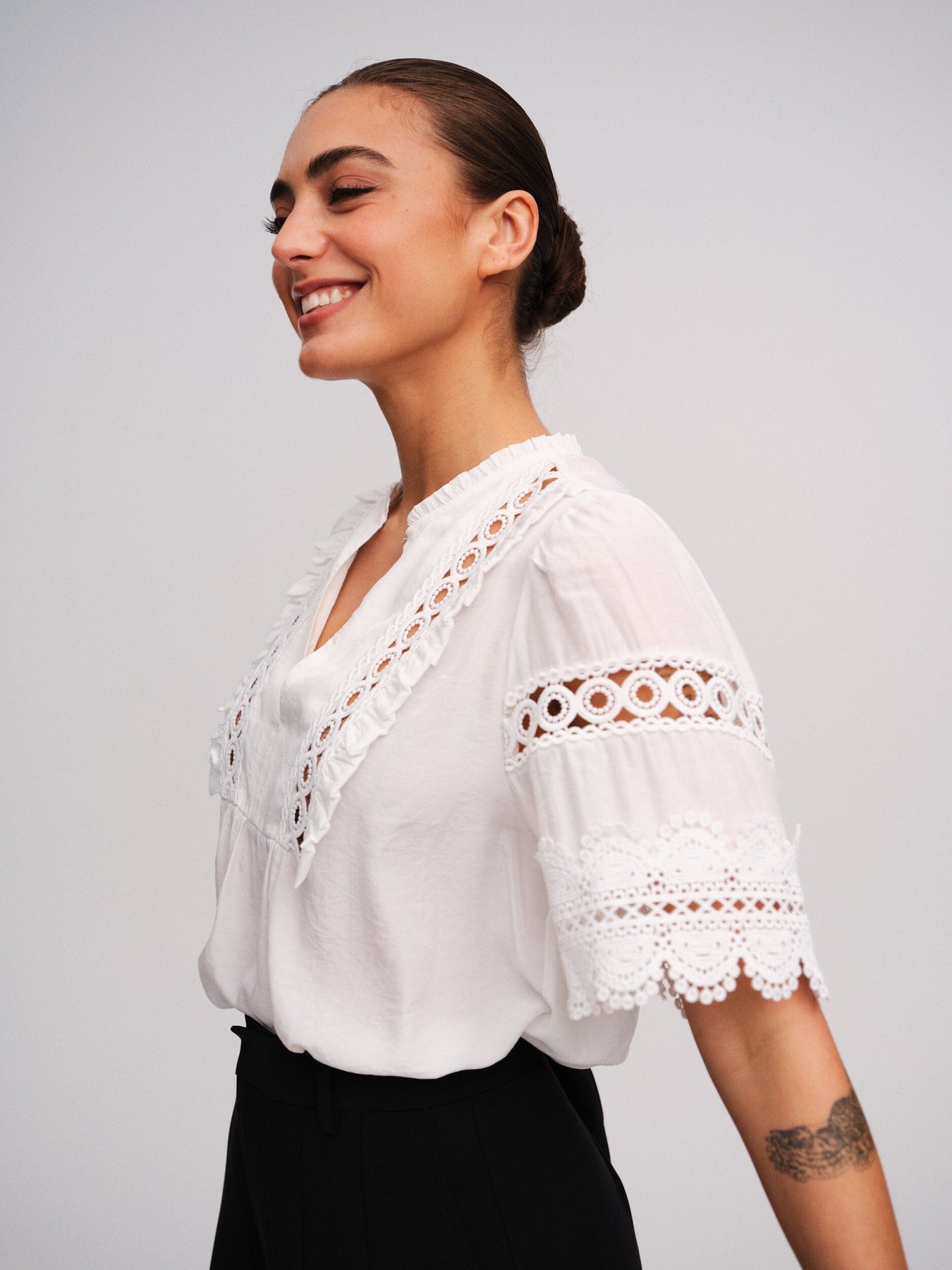 - Kurze Ärmel mit Spitzenmuster