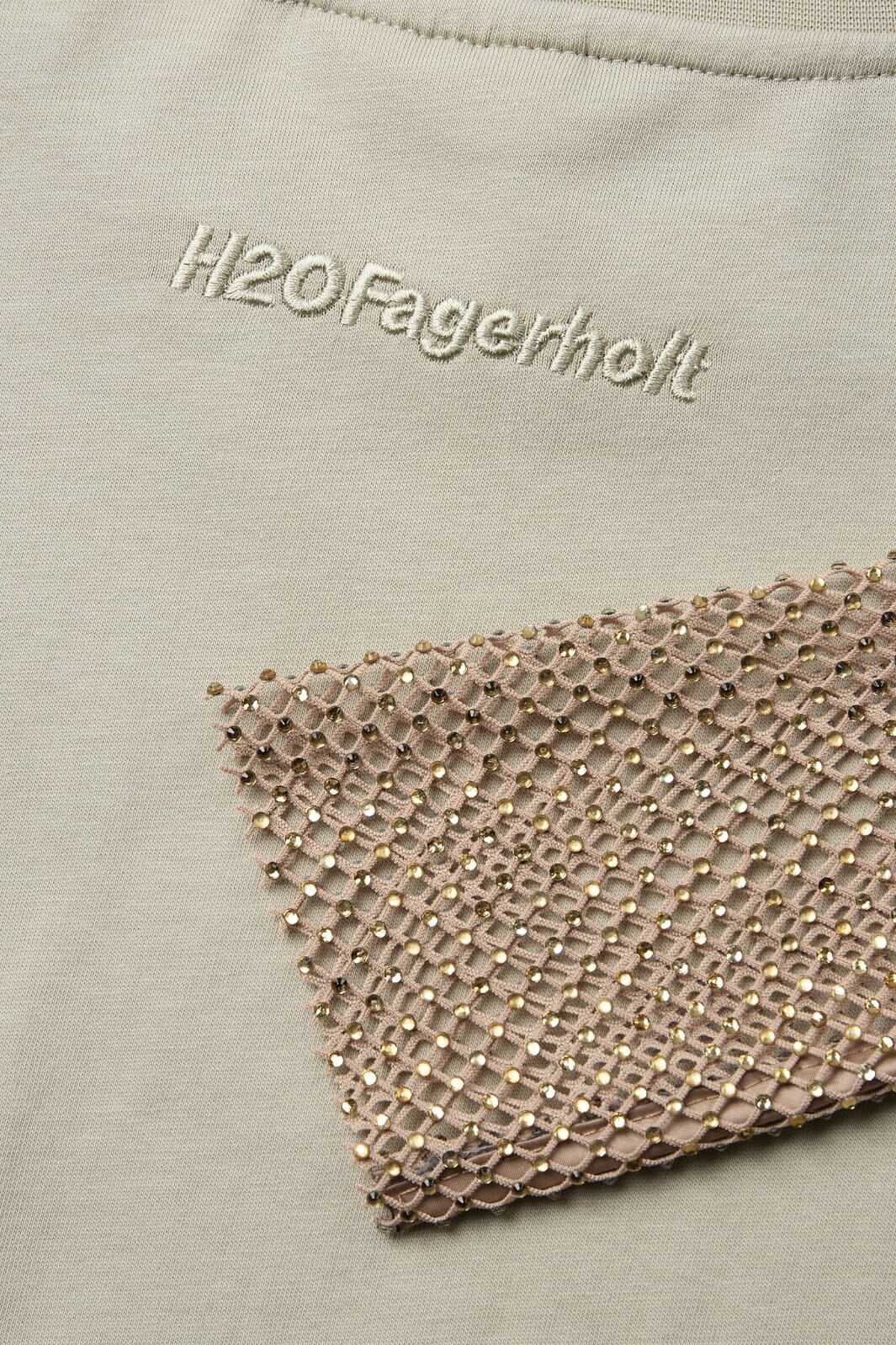Hellesgrau T-Shirt mit langen Ärmeln und Strassdekorationen. Die Stickerei auf dem Rücken und die funkelnden Ärmel verleihen dem T-Shirt einen festlichen Touch, während die lockere Passform für gute Bewegungsfreiheit sorgt.