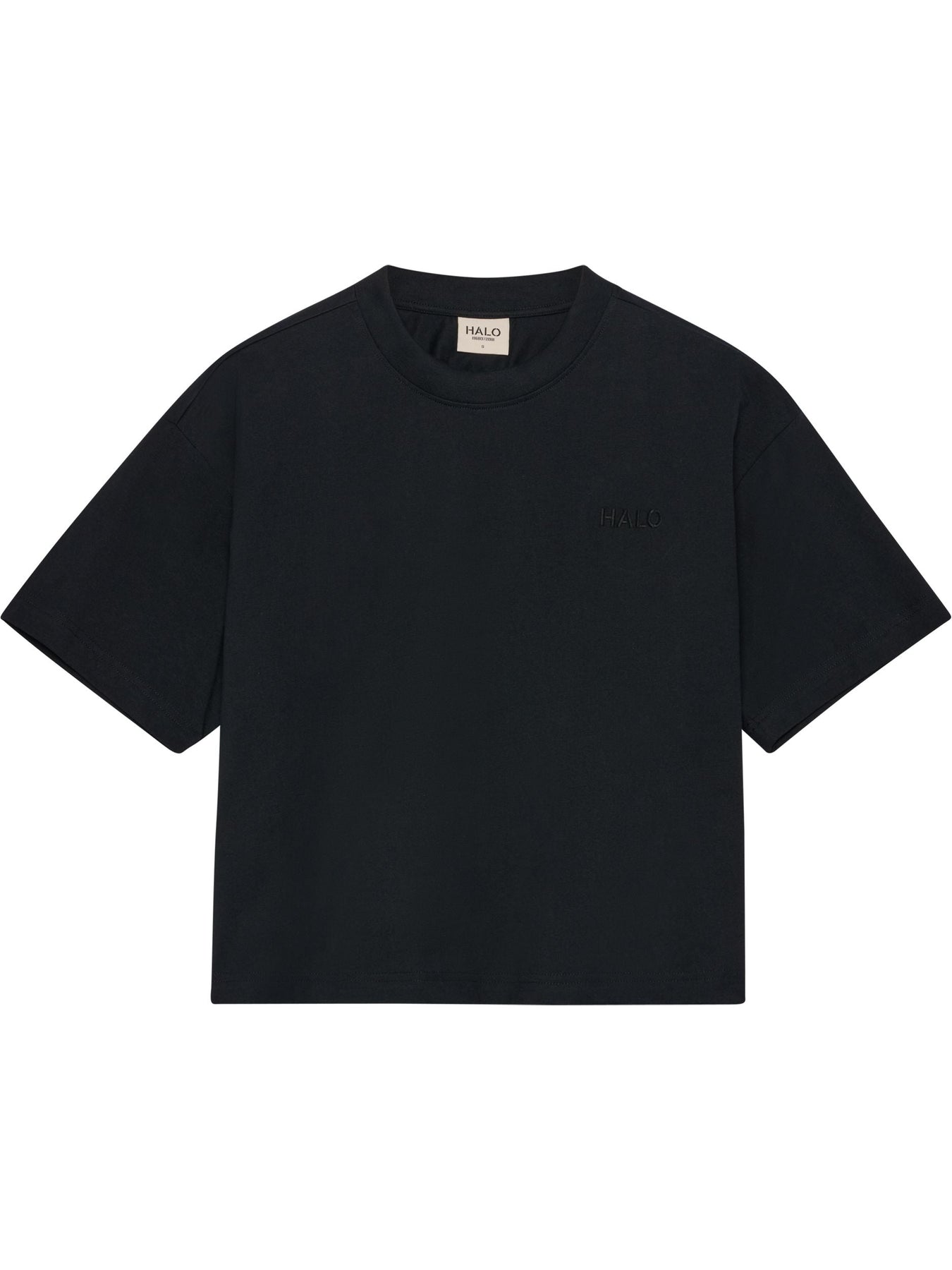 Schwarzes T-Shirt von Halo aus Bio-Baumwolle. Das T-Shirt hat ein gesticktes Logo und eine lockere Passform.