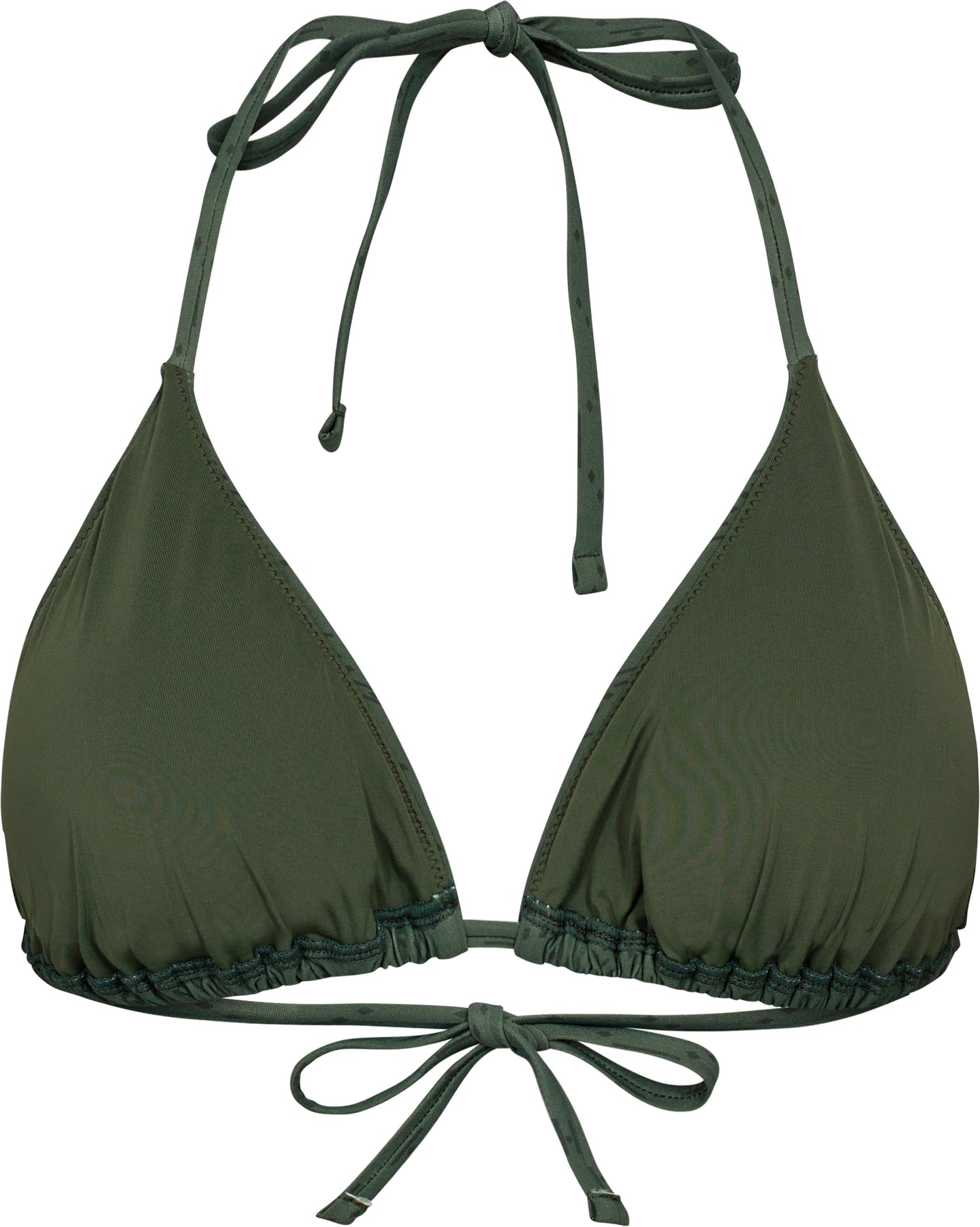 Triangle-Bikini von Hype The Detail in Grün. Der Bikini hat einen Print sowie Details mit Rüschen und Bindebändern.