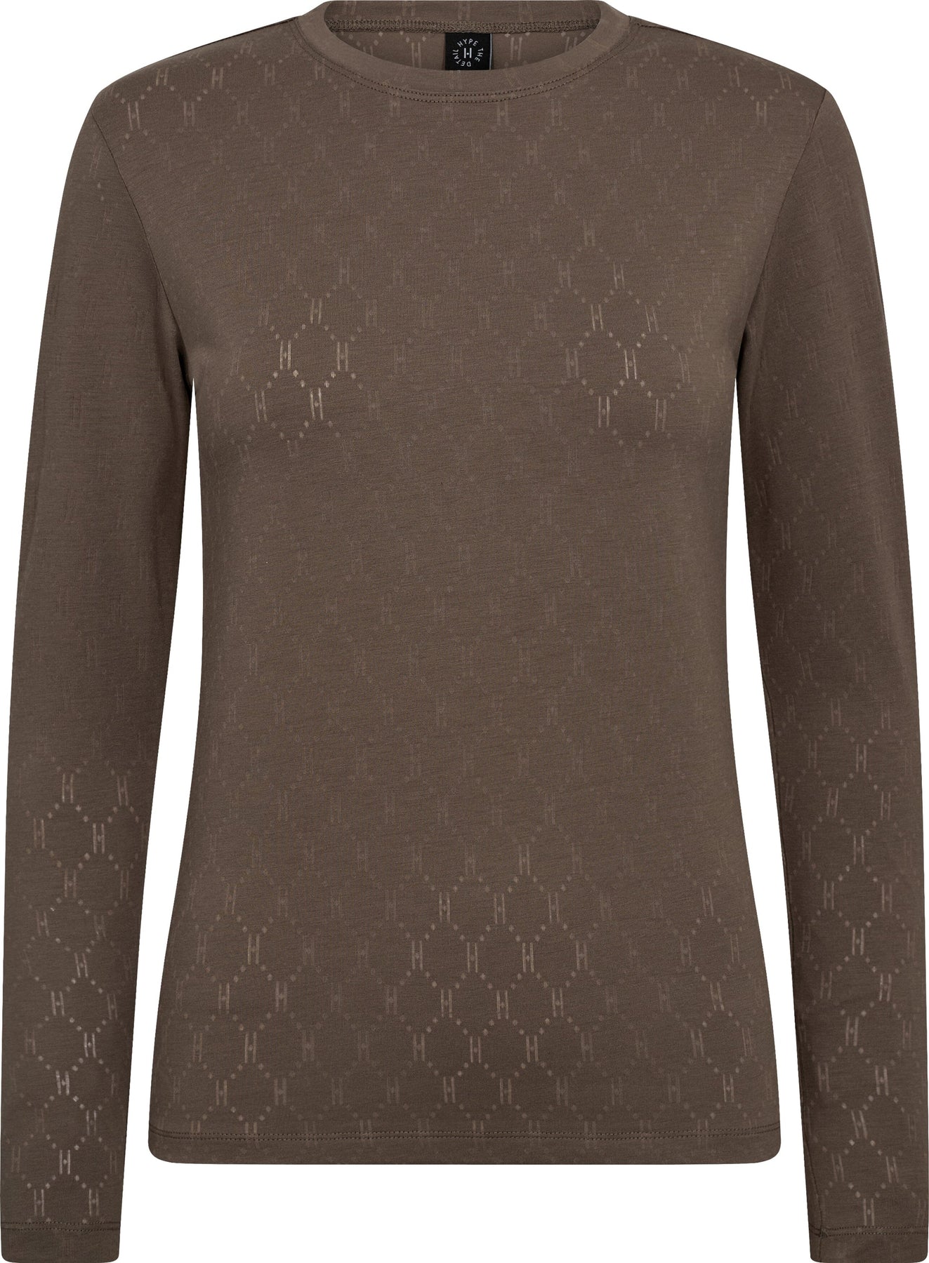 Langärmliges T-Shirt von Hype The Detail in Braun. Hergestellt aus 60 % Baumwolle, 35 % Polyester und 5 % Elasthan mit einem dezenten Print im Stoff.