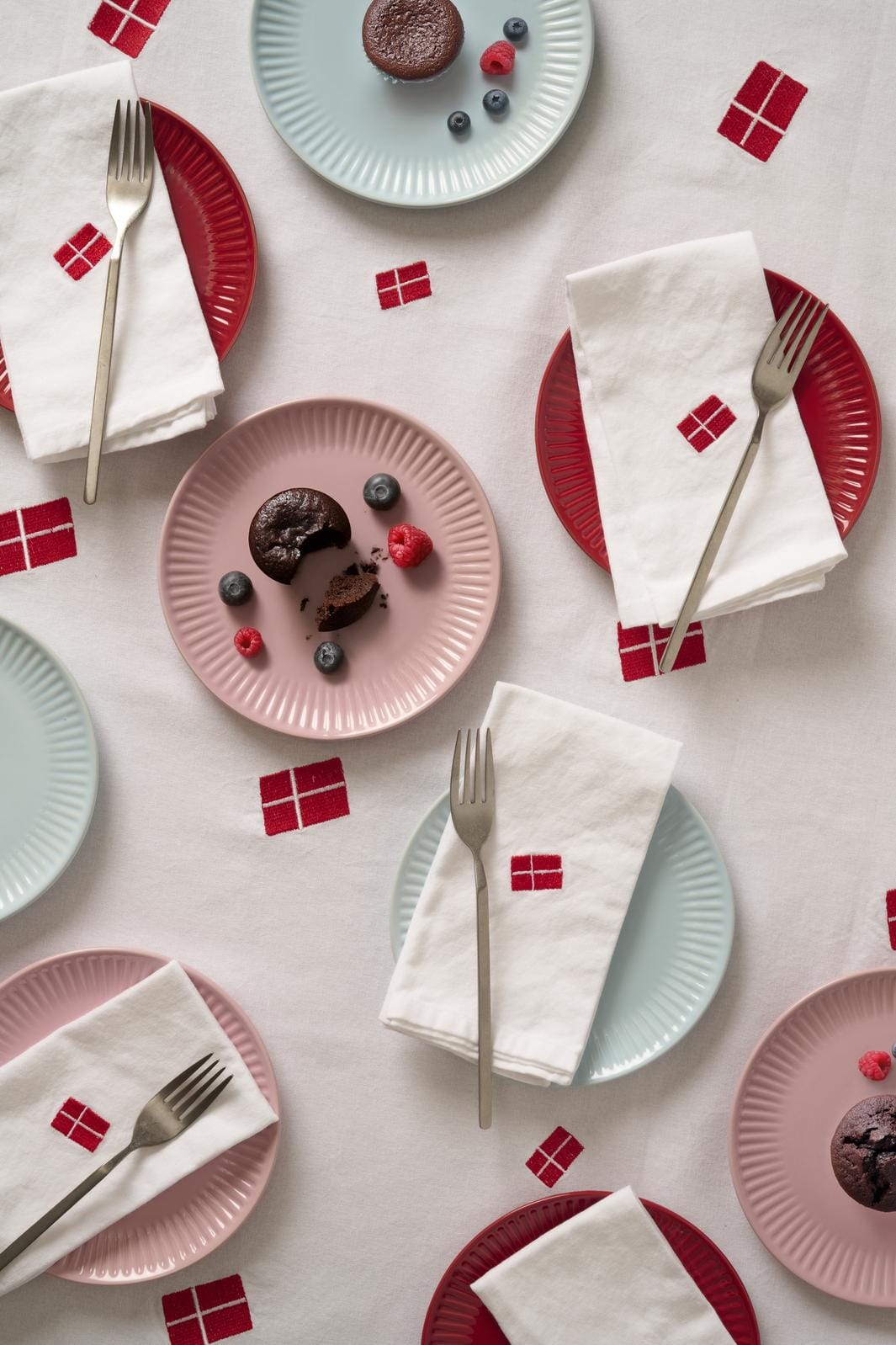 Stofserviet m/dansk flag hvid