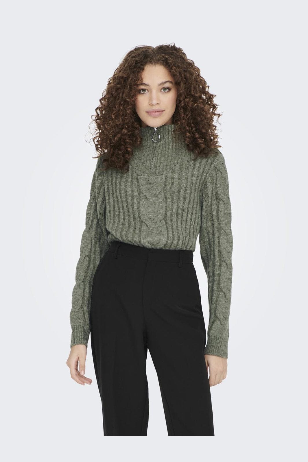 JDY Jdyandrea L/S Zip Cable Pullove Knt Farbe: 4086987 Kalamata Melange