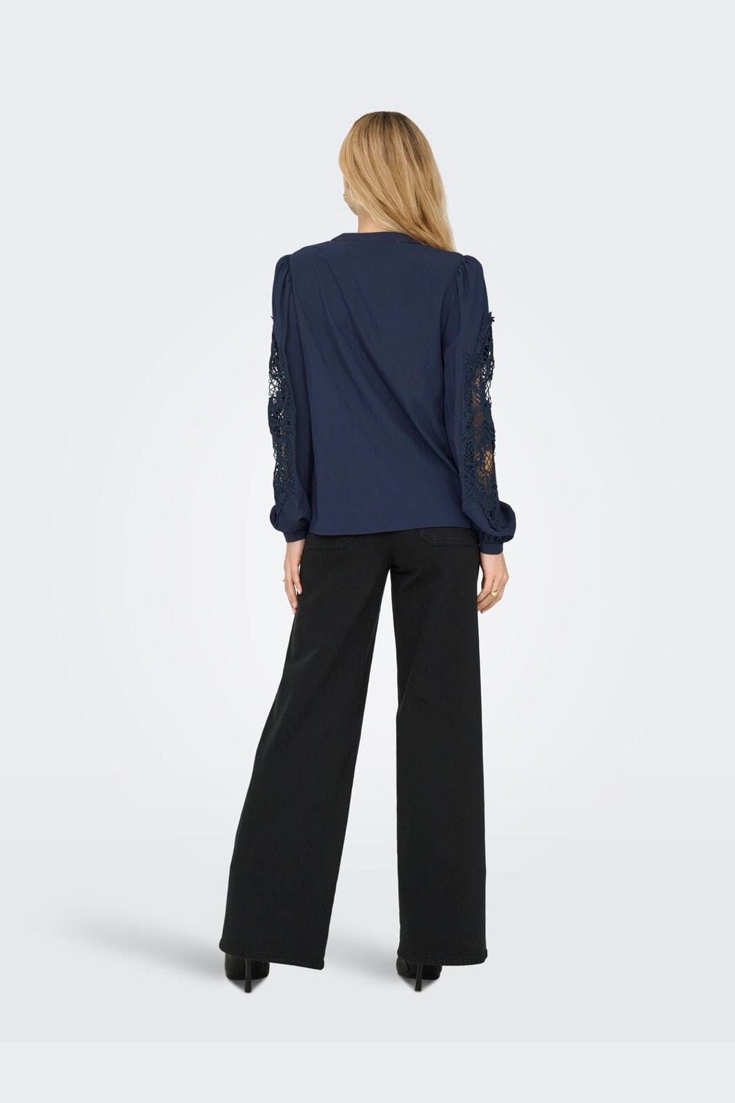 Dunkelblaues Hemd von JDY, gefertigt aus 70% Viskose und 30% Nylon. Das Hemd hat einen klassischen Hemdkragen und lange Ärmel mit Spitzendetails an den Ärmeln. Die Regular-Passform sorgt für einen angenehmen Sitz.