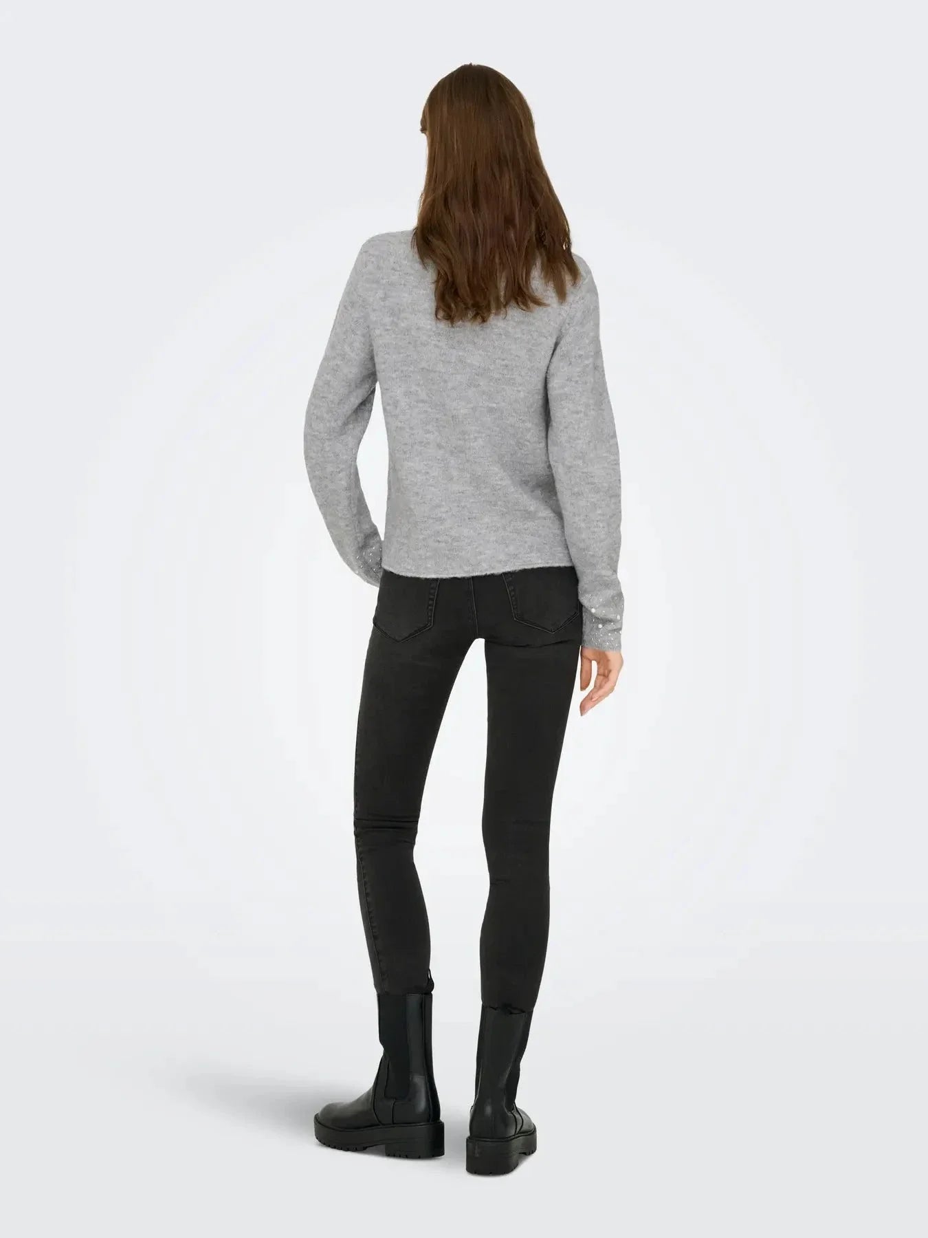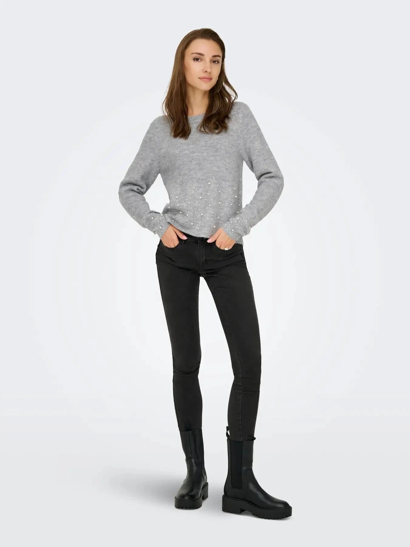 JDY Jdypearl L/S O-Neck Pearl Pullover Knt Farbe: 4815065 Light Grey Melange White Pearls