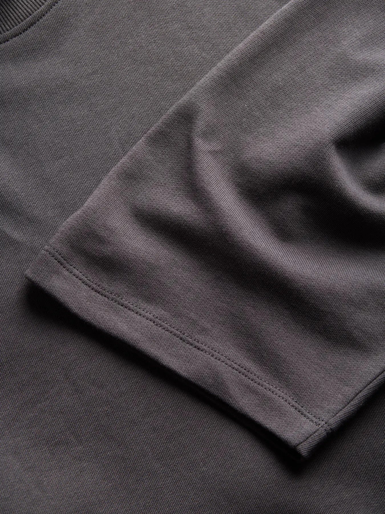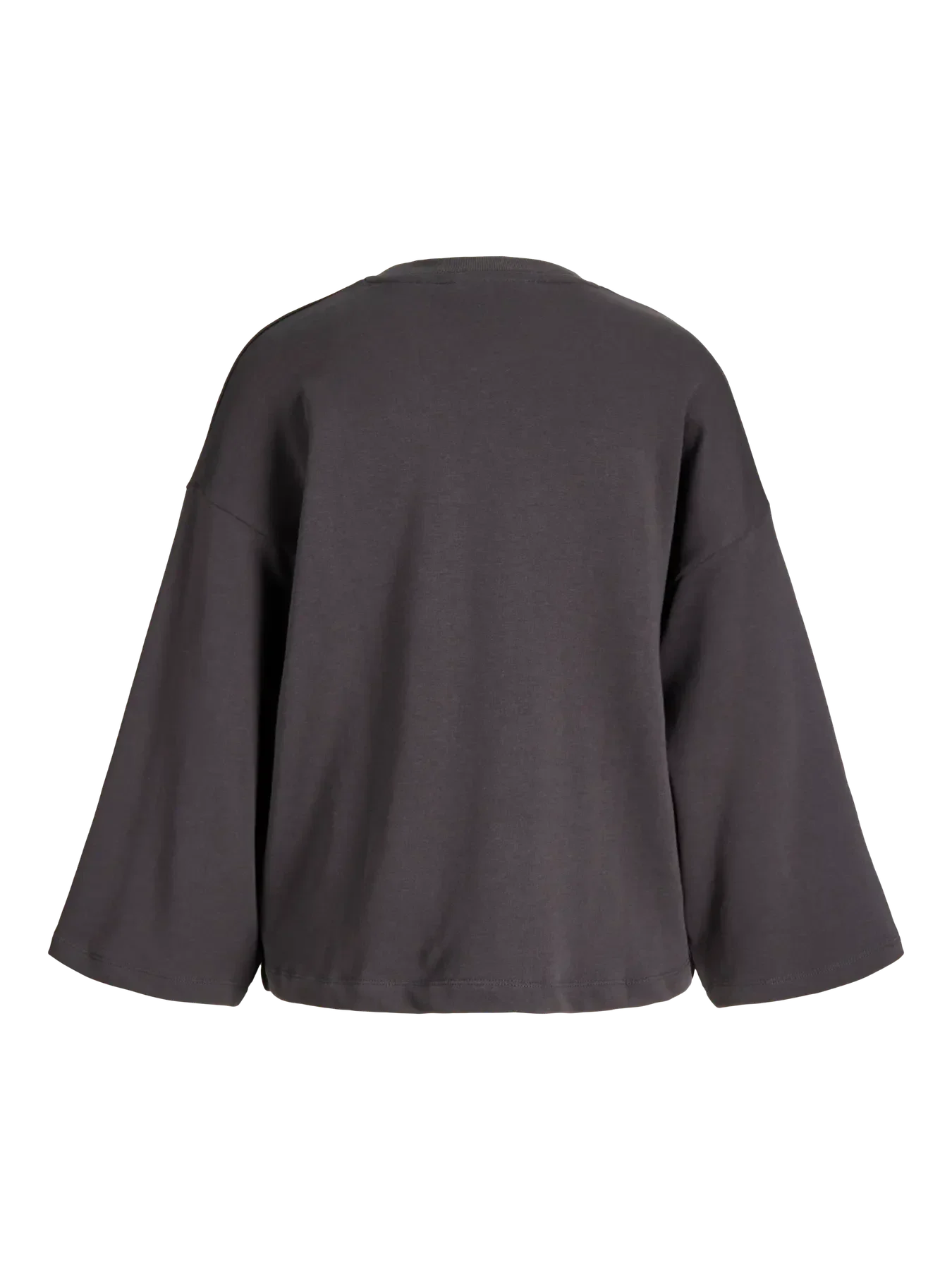 Ein graues Sweatshirt von Jjxx mit lockerer Passform und 3/4-Ärmeln. Das Sweatshirt hat einen Rundhalsausschnitt und besteht aus Baumwolle.