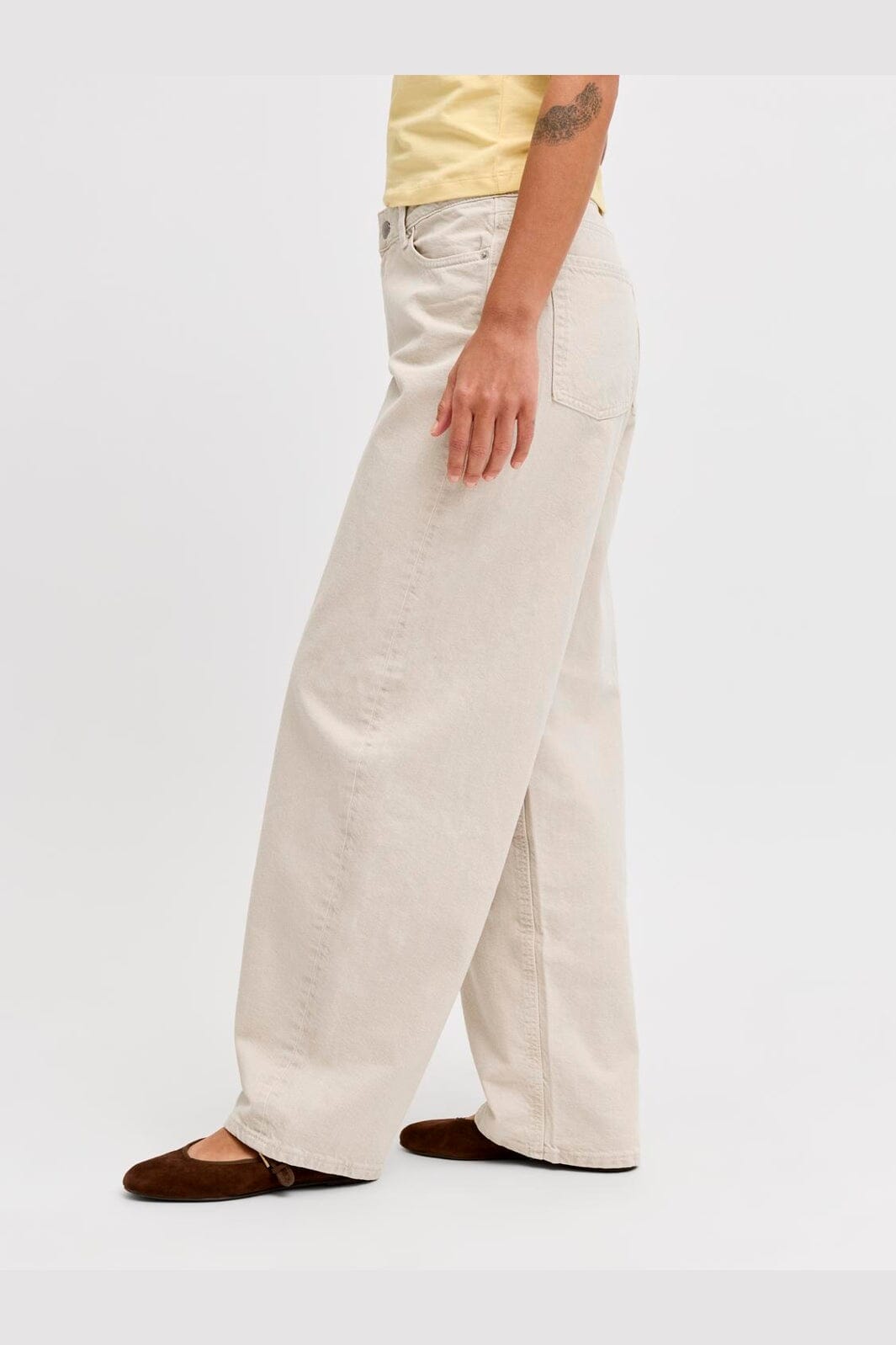 Helle Jeans von JJXX mit Barrel-Fit-Passform und einem hellbeigen Farbton. Die Jeans haben eine legere Passform mit weitem Bein und bestehen aus strapazierfähigem Denim-Twill.
