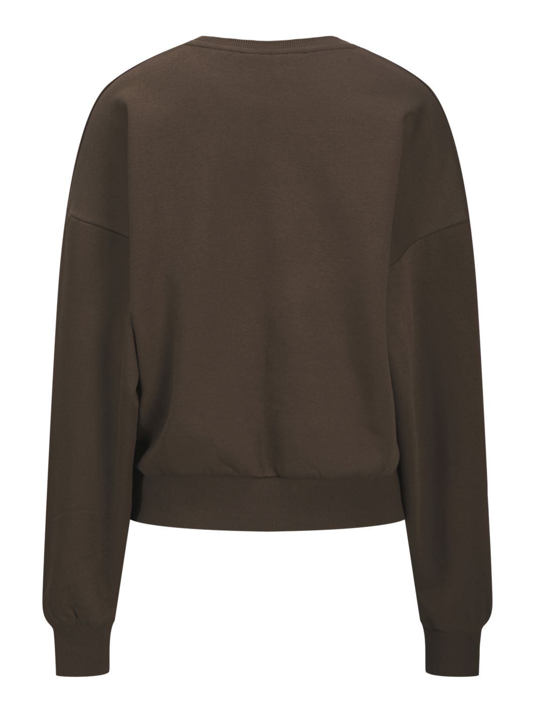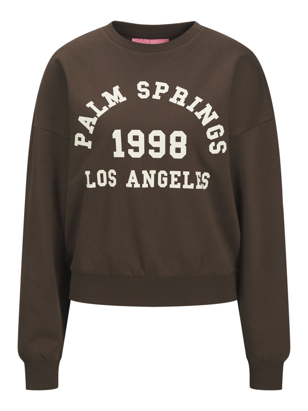 Brauner Sweatshirt von Jjxx mit lockerer Passform und rundem Halsausschnitt. Grafischer Druck auf der Vorderseite mit dem Text Palm Springs 1998 Los Angeles in kontrastierenden Farben.