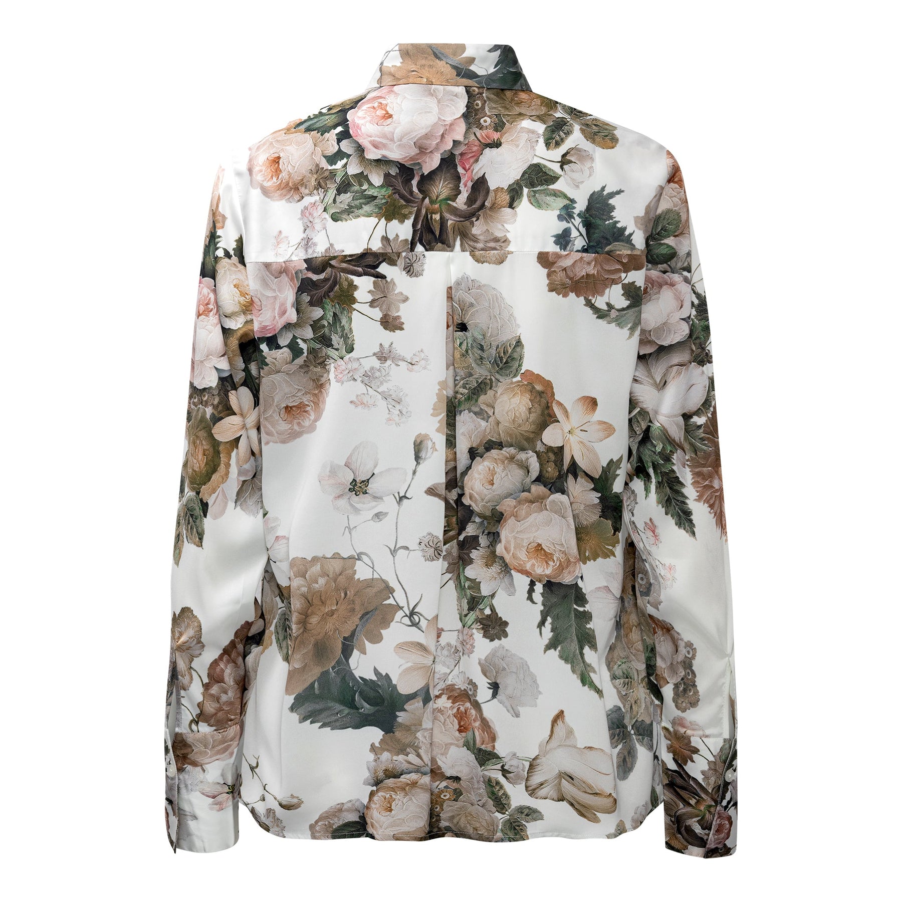 Bluse von Karmamia mit Blumenprint in Rosé-, Beige- und Grüntönen. Die Bluse hat eine leicht oversized Passform im Boyfriend-Stil.