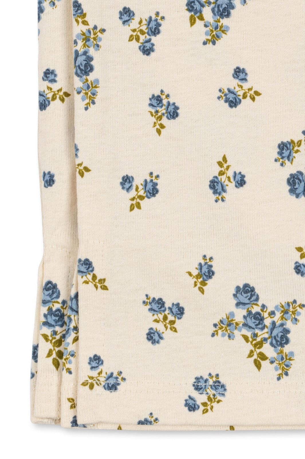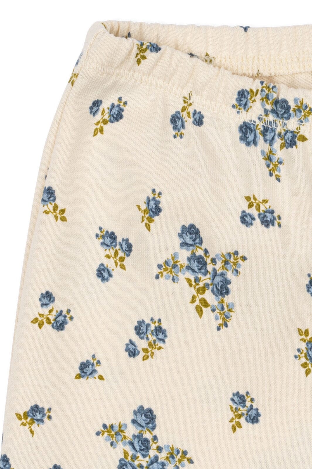Hose von Konges Sløjd in einem cremefarbenen Ton mit Blumenmuster in Blau- und Gelbtönen. Die Hose besteht aus 100 % Bio-Baumwolle.