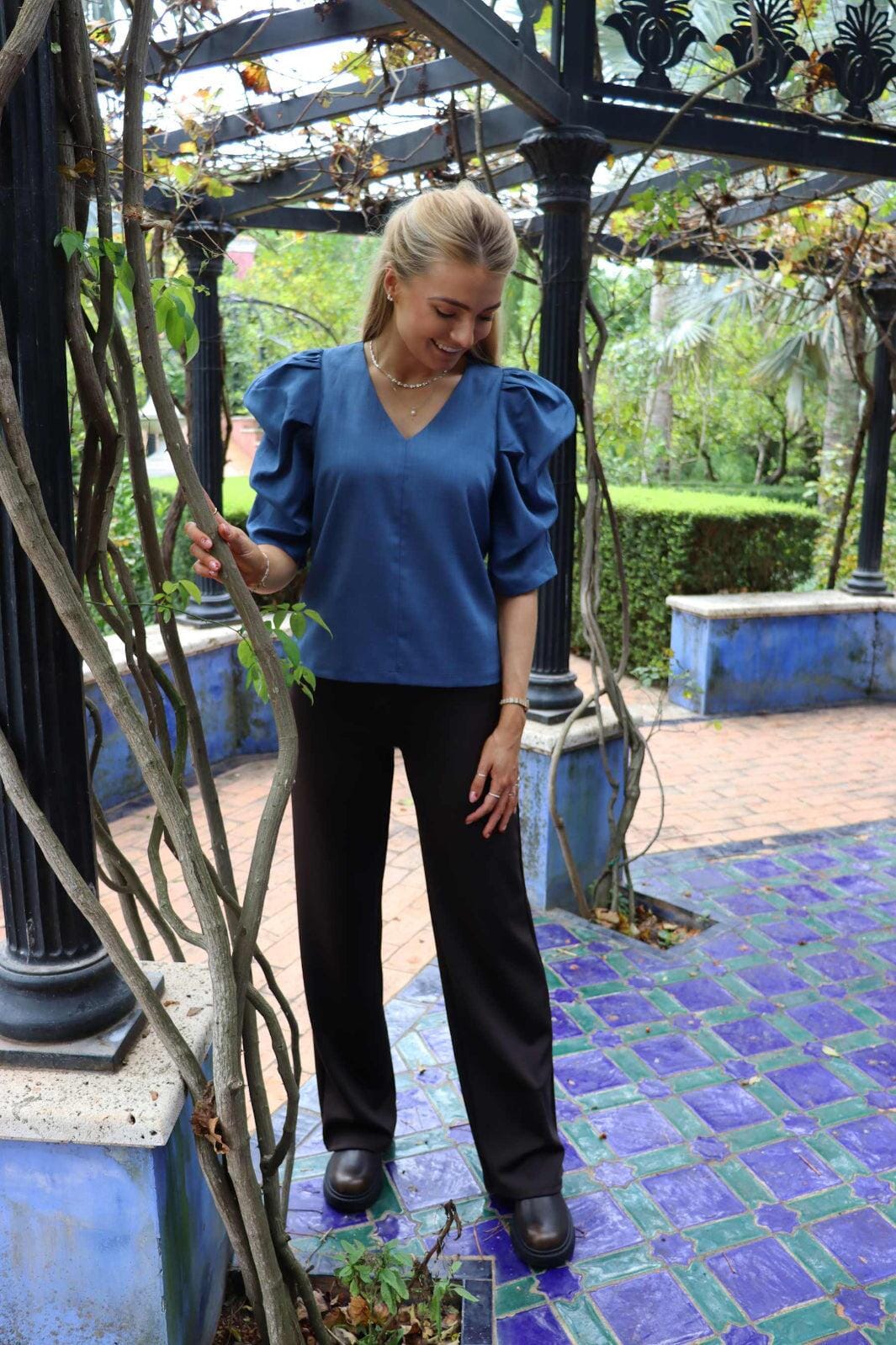 - 46% Viskose, 45% Polyester, 9% Spandex