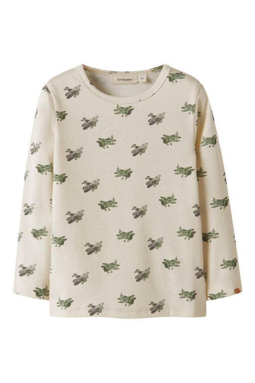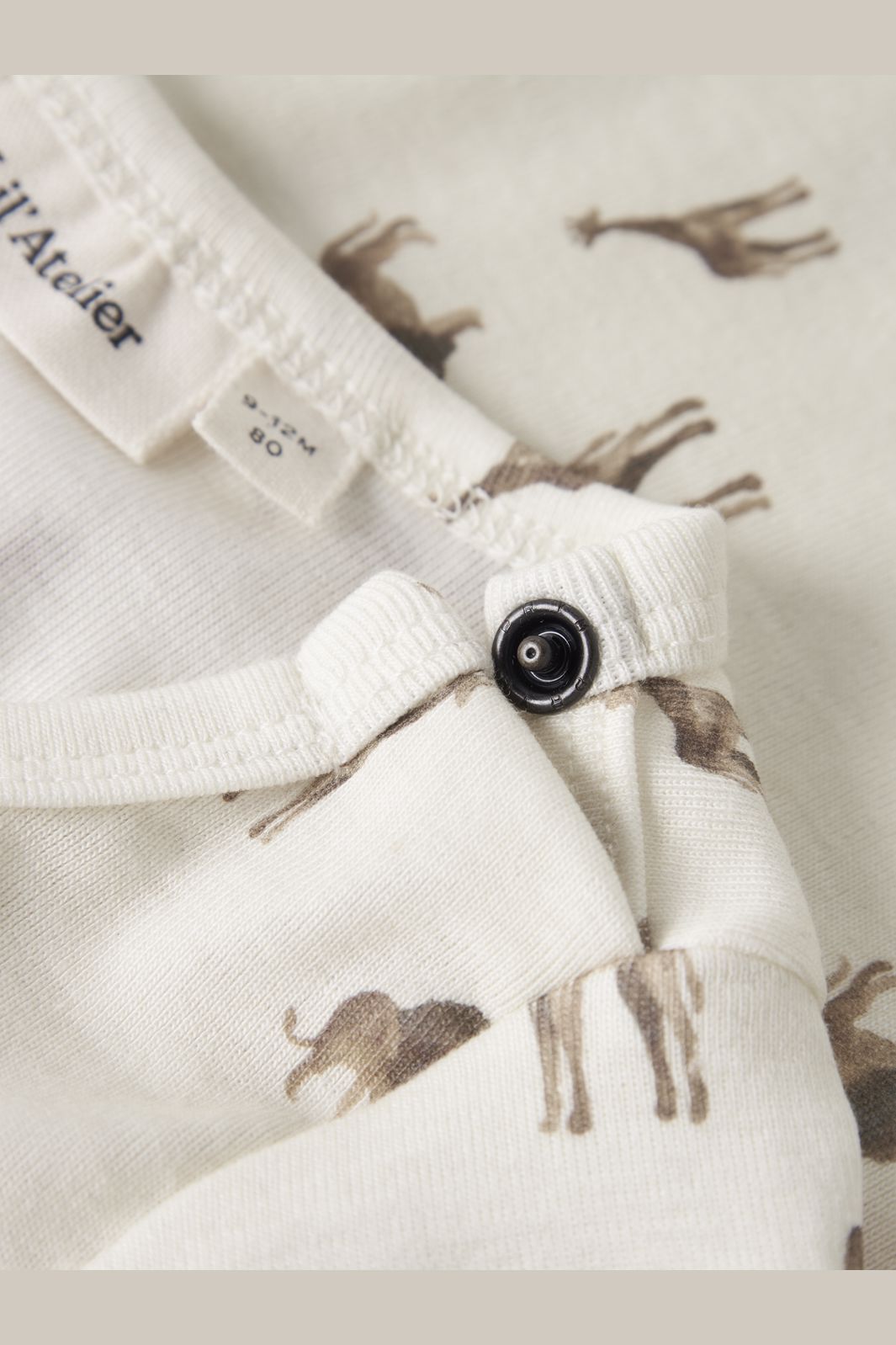 Langærmet body fra Lil' Atelier i cremefarvet med dyreprint af giraffer og løver. Bodyen har en slim fit og er lavet af 57 % økologisk bomuld, 38 % Lyocell og 5 % elastan.