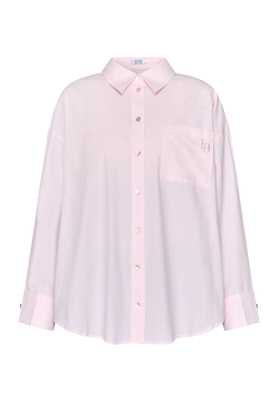 Rosa Hemd von Love & Divine aus 100 % Baumwolle. Das Hemd hat eine oversized Passform und lange Ärmel mit Hemdkragen und Knopfverschluss.