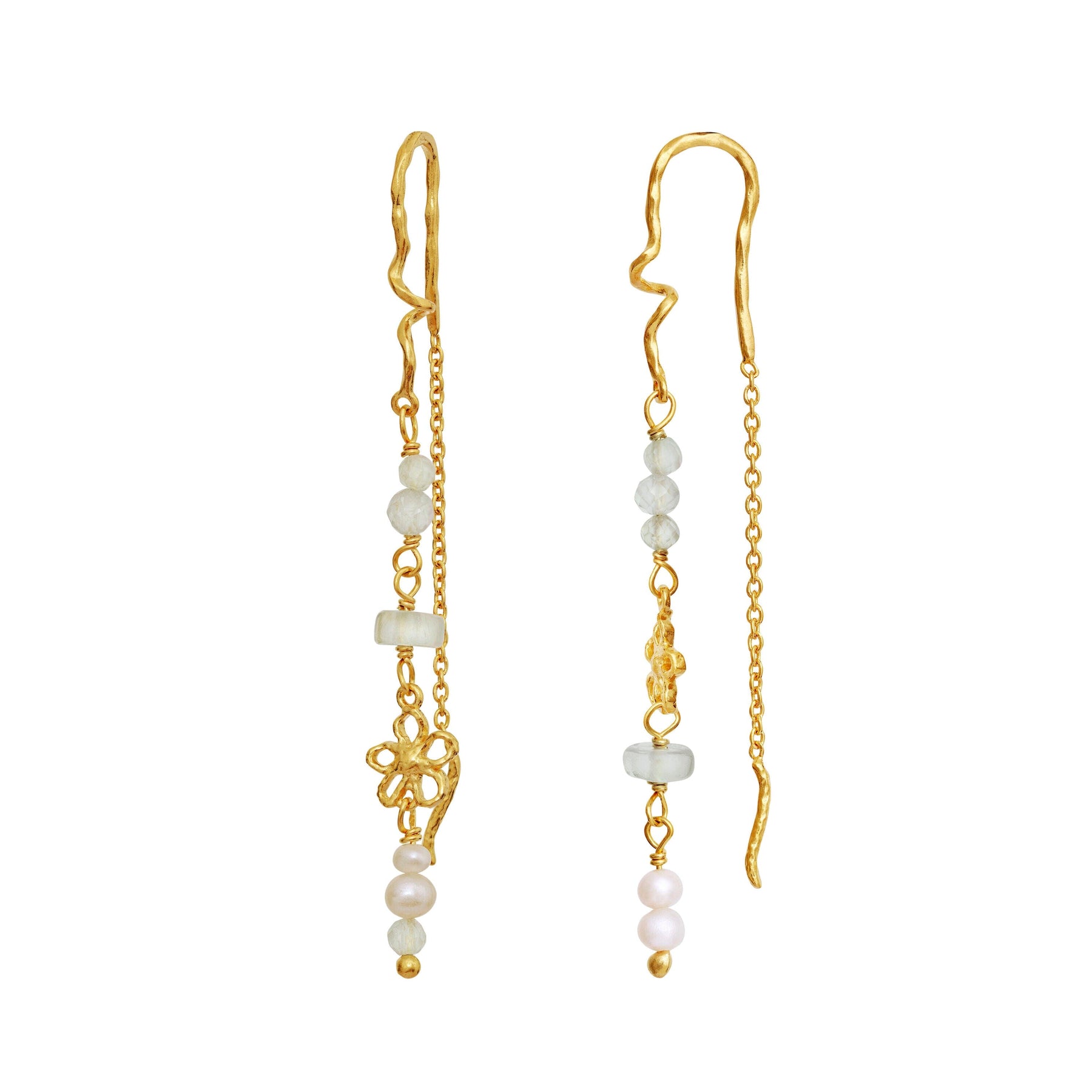 Ohrringe von Maanesten, gefertigt aus recyceltem Sterlingsilber, das mit 18 Karat Gold vergoldet ist. Das Design ist von sanftem Sommerregen und Erinnerungen zur Mittsommerzeit inspiriert.