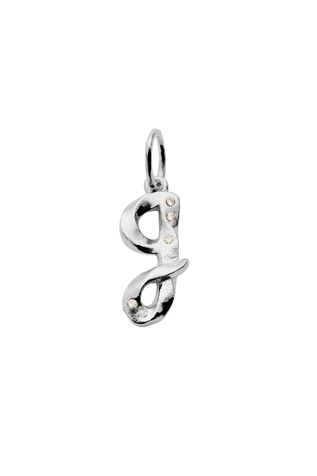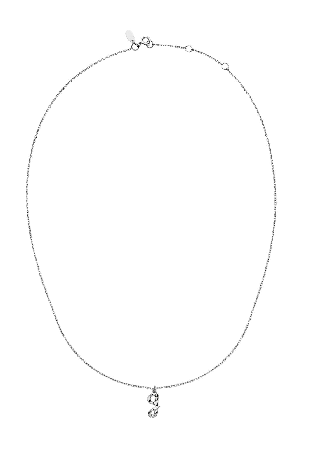 Silberkette von Maanesten mit einem G-Buchstaben als Anhänger. Der Anhänger hat kleine Kristalldetails, die im Licht funkeln, und ist in einem stilisierten Design gefertigt.