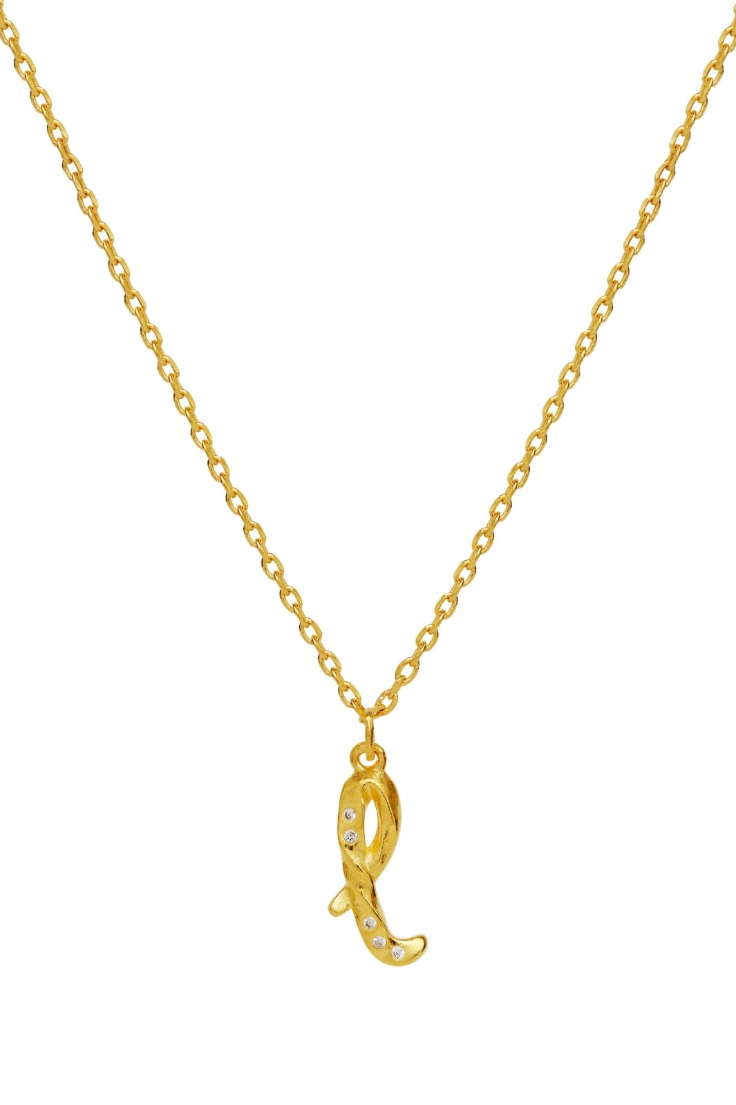 Goldkette von Maanesten mit einem L-förmigen Anhänger. Die Kette besteht aus recyceltem Sterlingsilber mit 18 Karat Vergoldung, was dem Schmuck eine warme goldene Farbe verleiht.
