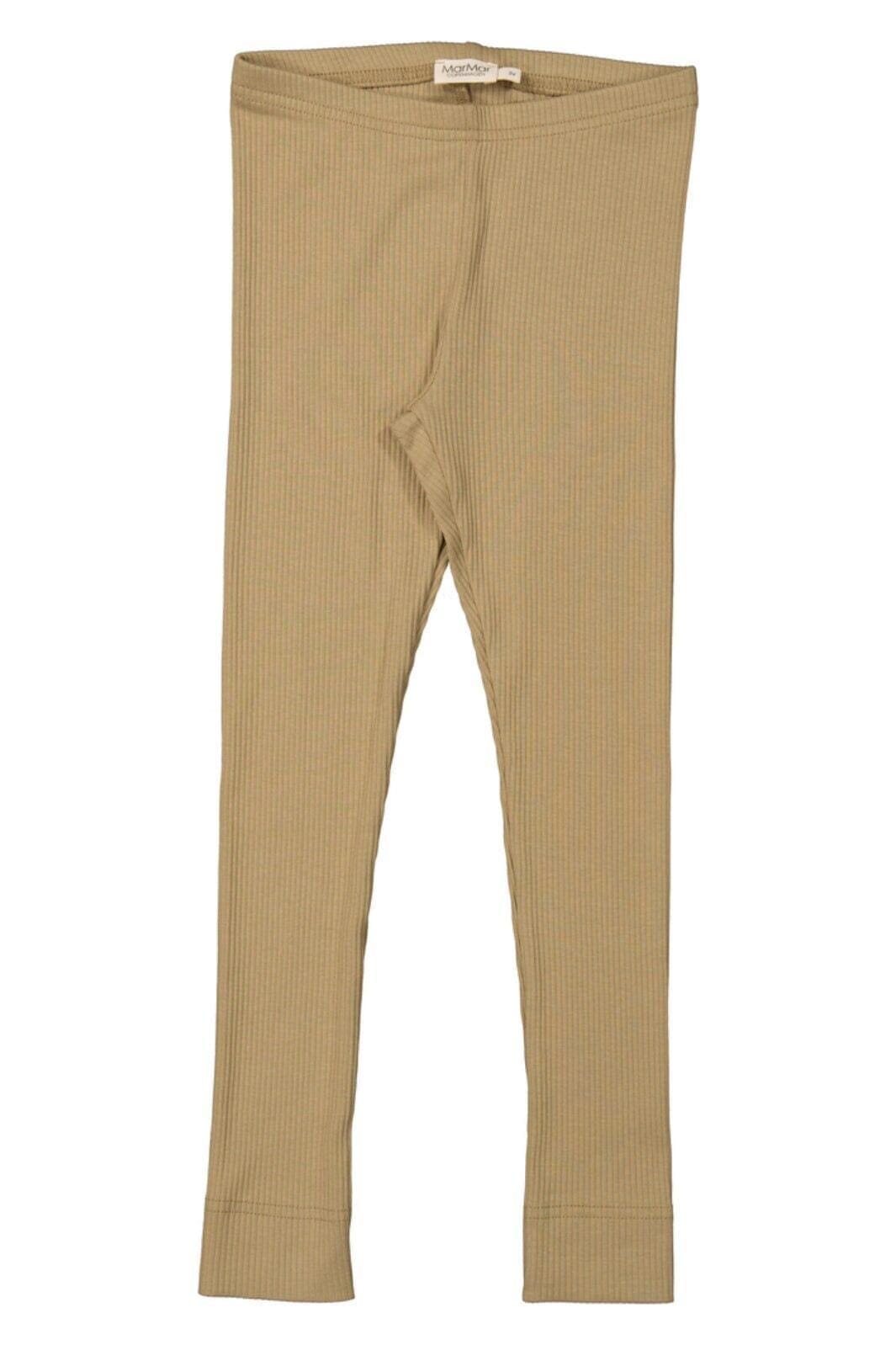 Beige Leggings von MarMar mit gerippter Textur. Der elastische Bund und die Knöchellänge sorgen für eine gute Passform für Bewegung und Spiel.