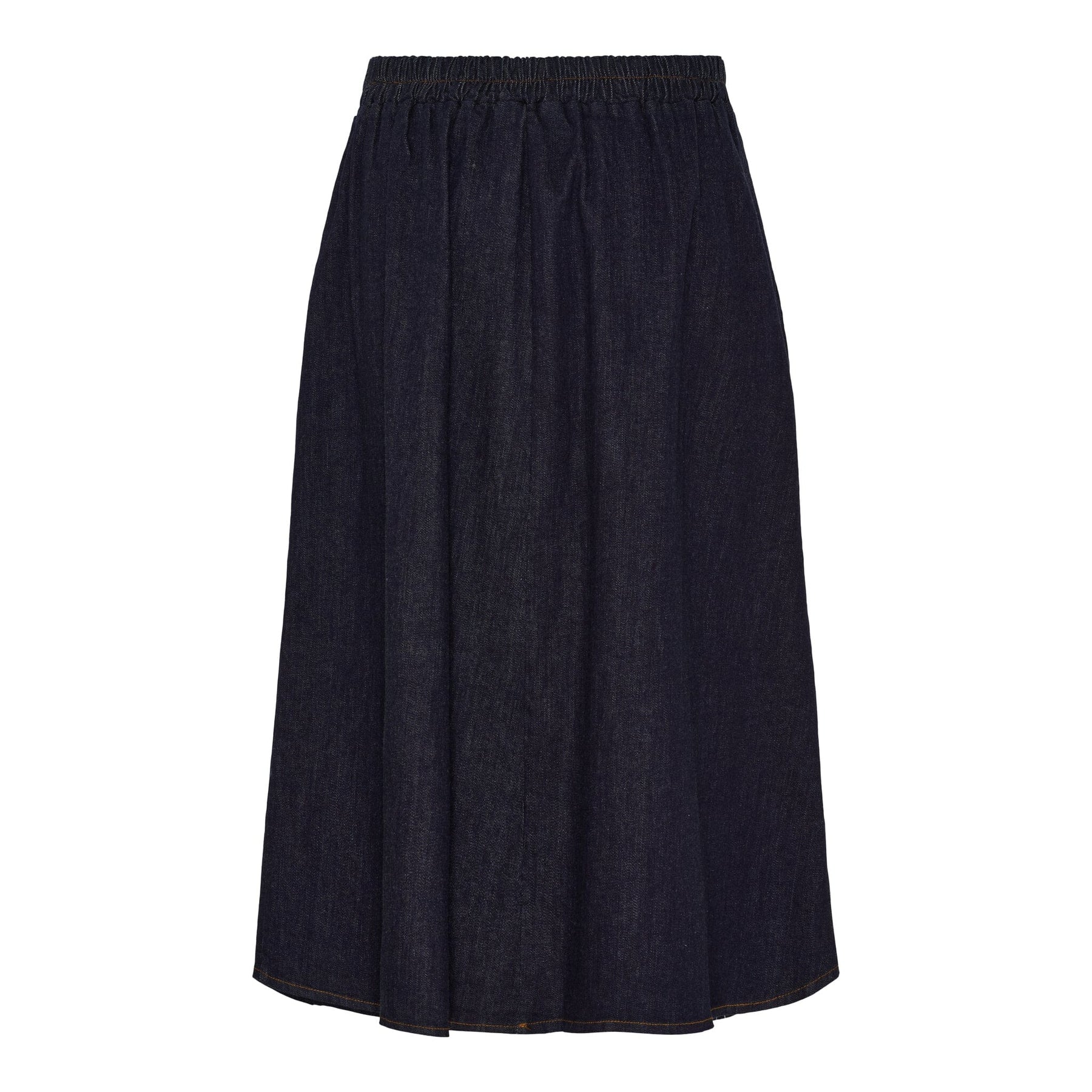 Dunkelblaue Rock von Marta Du Chateau. Der Rock hat eine hohe Taille, Faltendetails vorne und einen breiten Bund mit dekorativen Nähten.