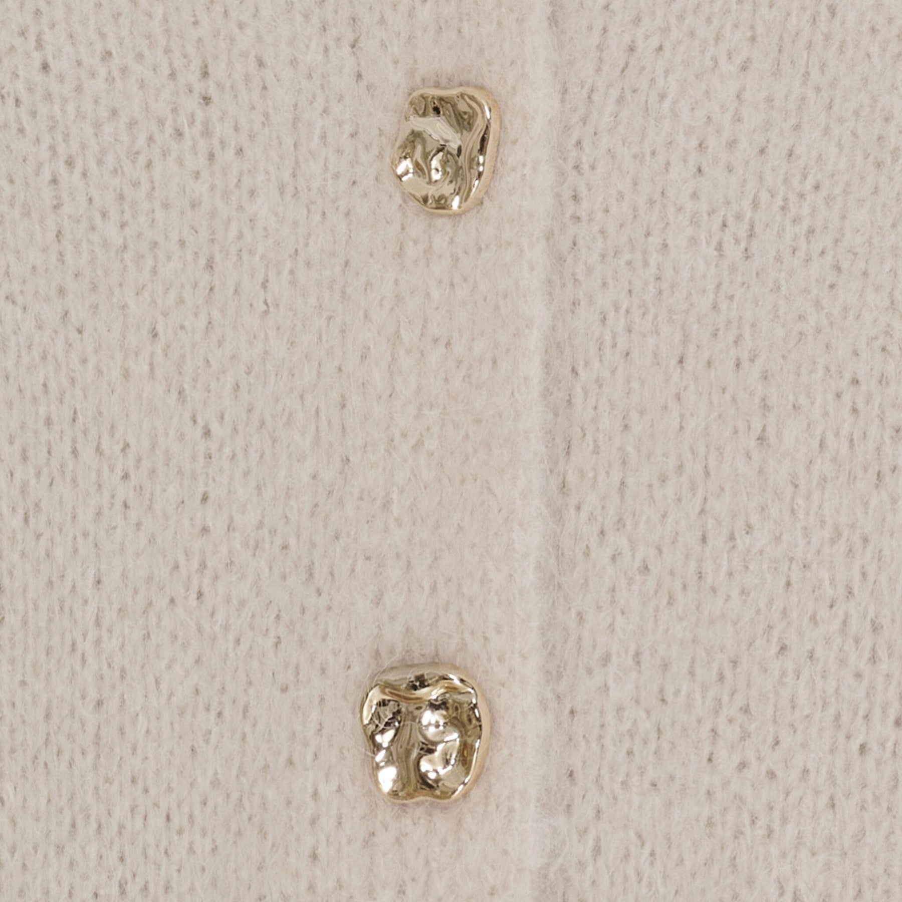 Beige Weste von Marta Du Chateau mit V-Ausschnitt und Knopfleiste. Die Weste ist ärmellos und hat einen gerippten Saum.