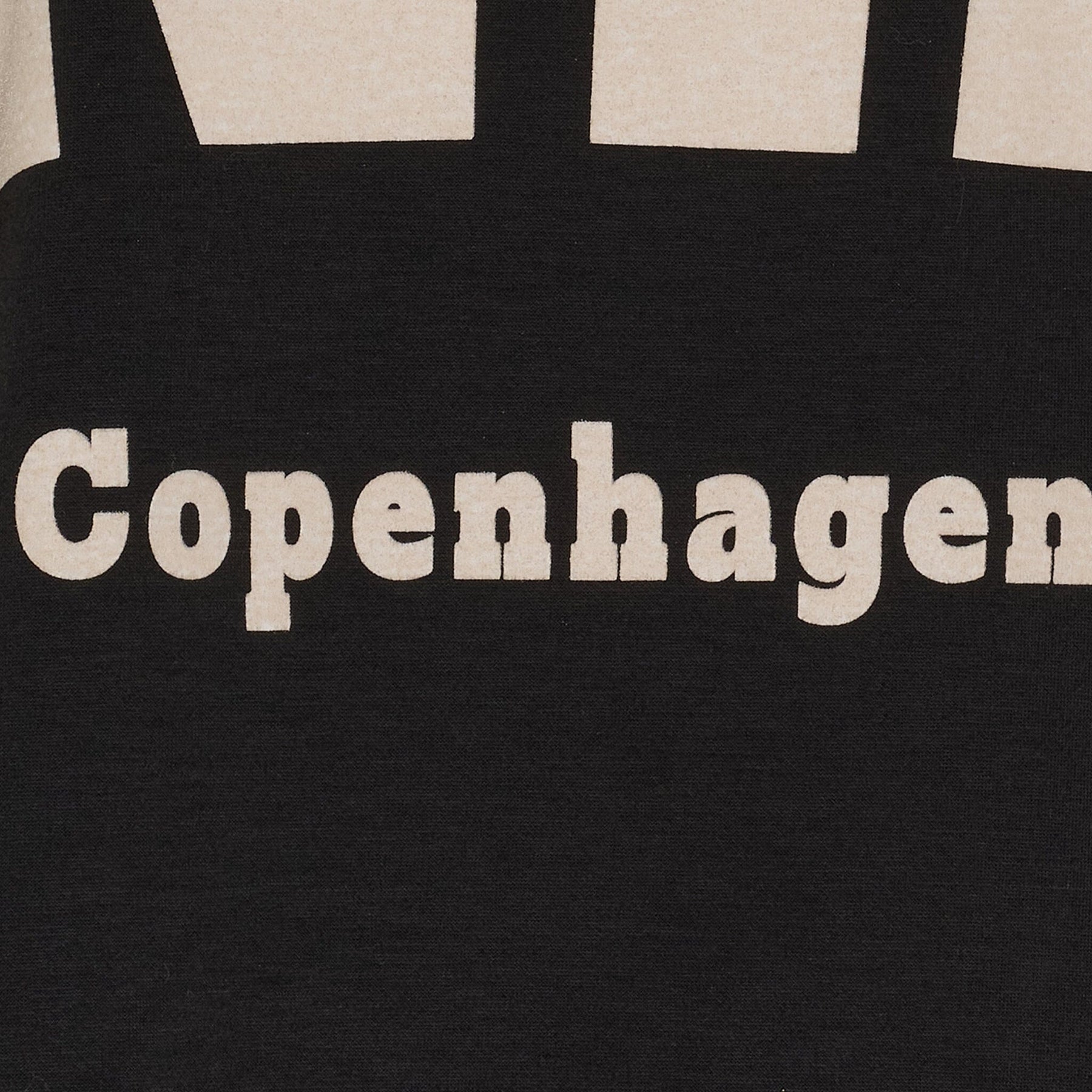 Schwarzes und weißes Sweatshirt von Marta Du Chateau mit großen weißen Buchstaben, die COPENHAGEN auf der Vorderseite bilden.